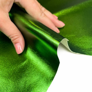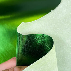 High-quality lambskin leather fabric hides in a beautiful metallic green color. Wonderful and juicy shine all over the leather! Our mission is to provide only the best quality Italian leather samples to other leather workers, crafters of all kinds, small businesses or Etsy shop for your own projects.