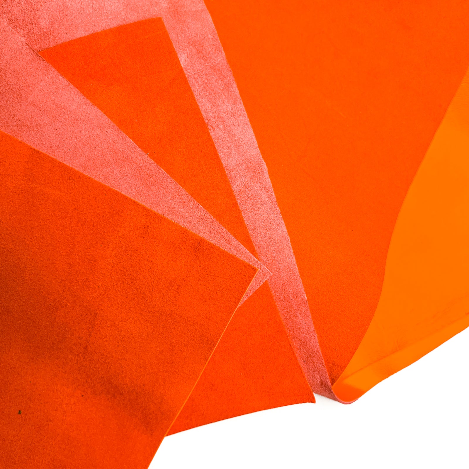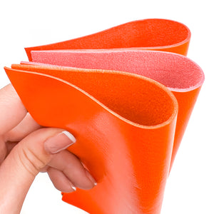 High-quality lambskin leather. Bright Orange NEON leather pieces for your best projects! Our mission is to provide only the best quality Italian leather to other leather workers, crafters of all kinds, small businesses or Etsy shop for your own projects.