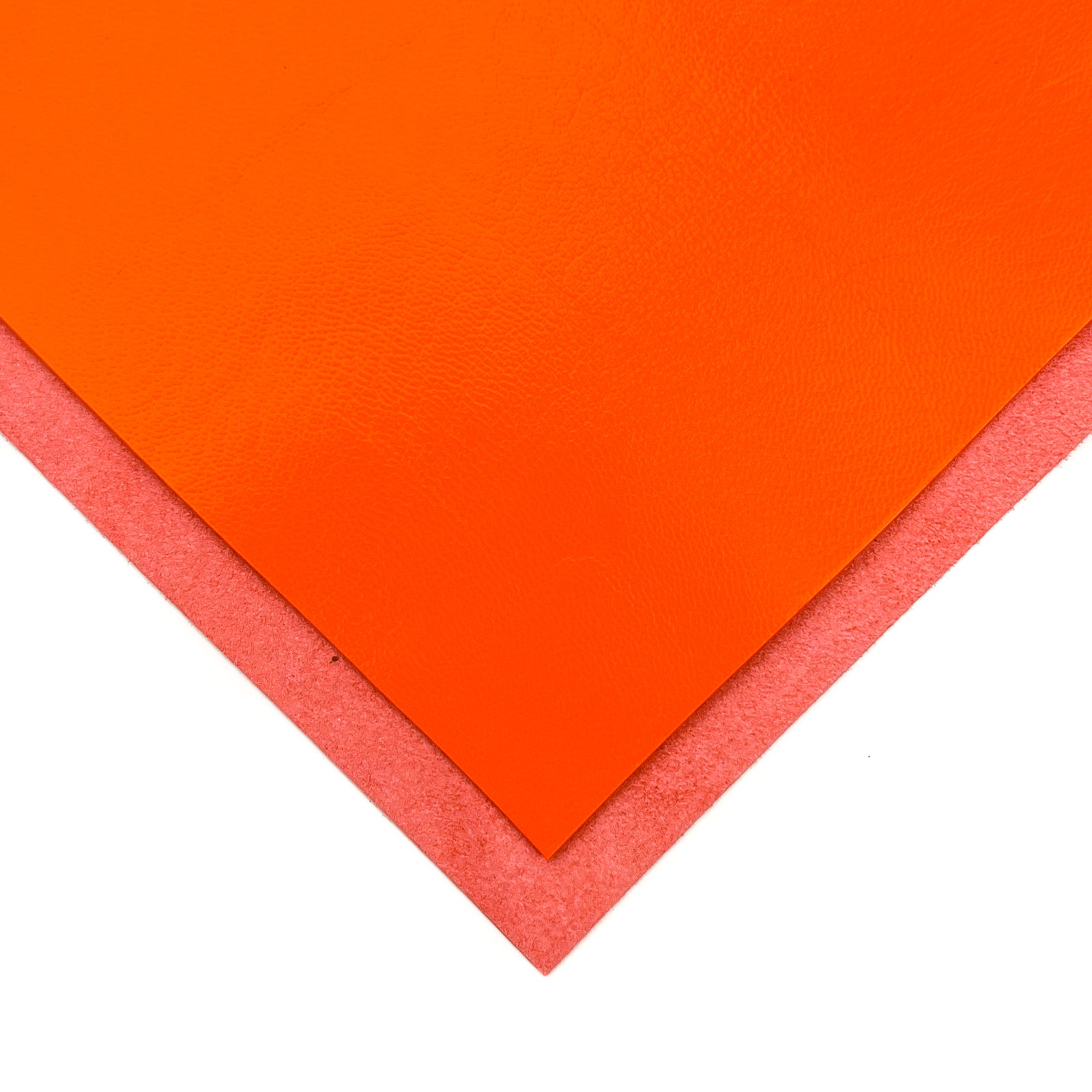 - Trending NEON color lambskin leather sheets. Color is much more brighter in real life than in pictures, leather hides are NEON orange. This is bonded leather. Backside my vary - orange, washed orange as you can see in the photos.