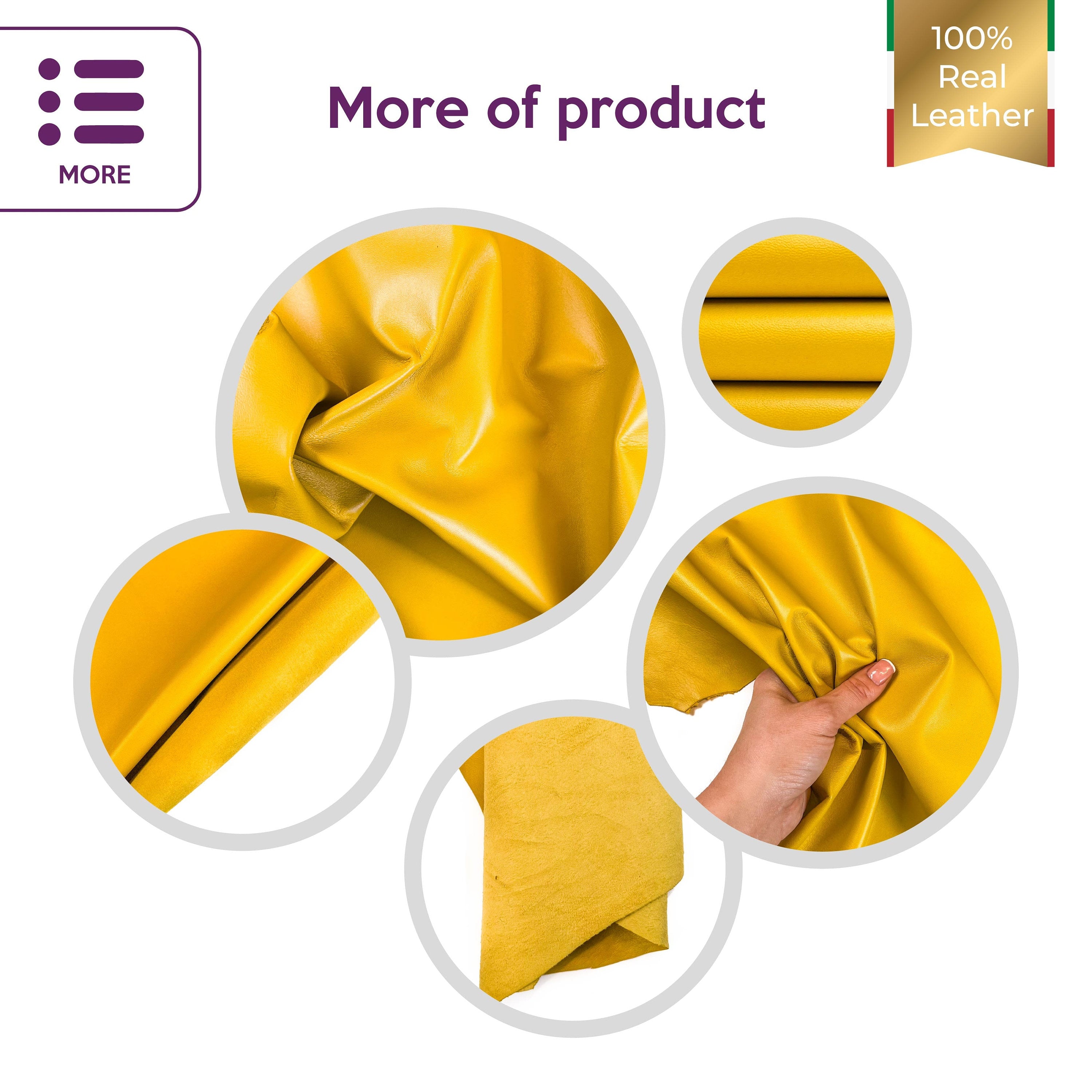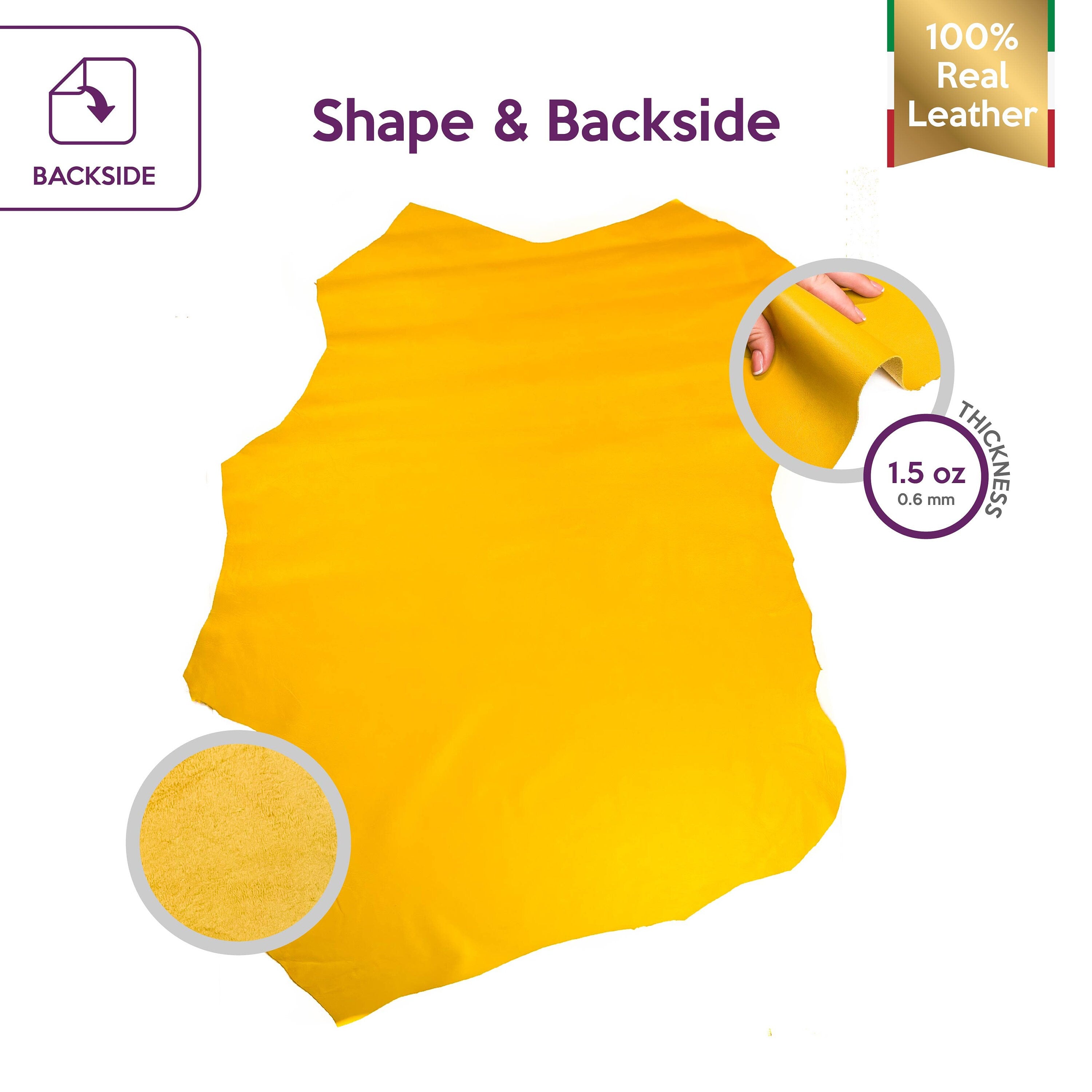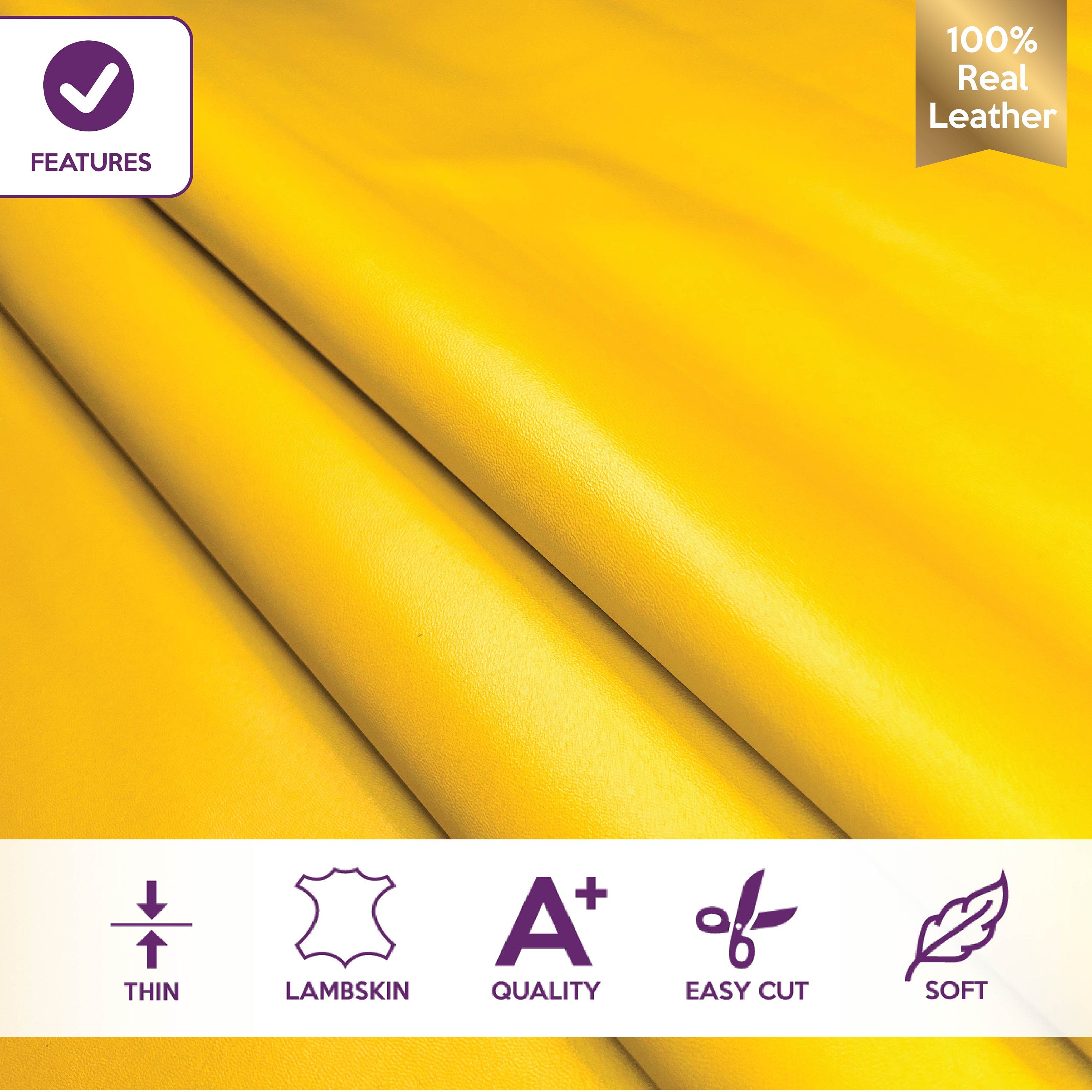 - Shiny and very soft yellow lambskin leather hides. Bright yellow color. Leather is very thin. Perfect for sewing leather clothing such as shirts and skirts.