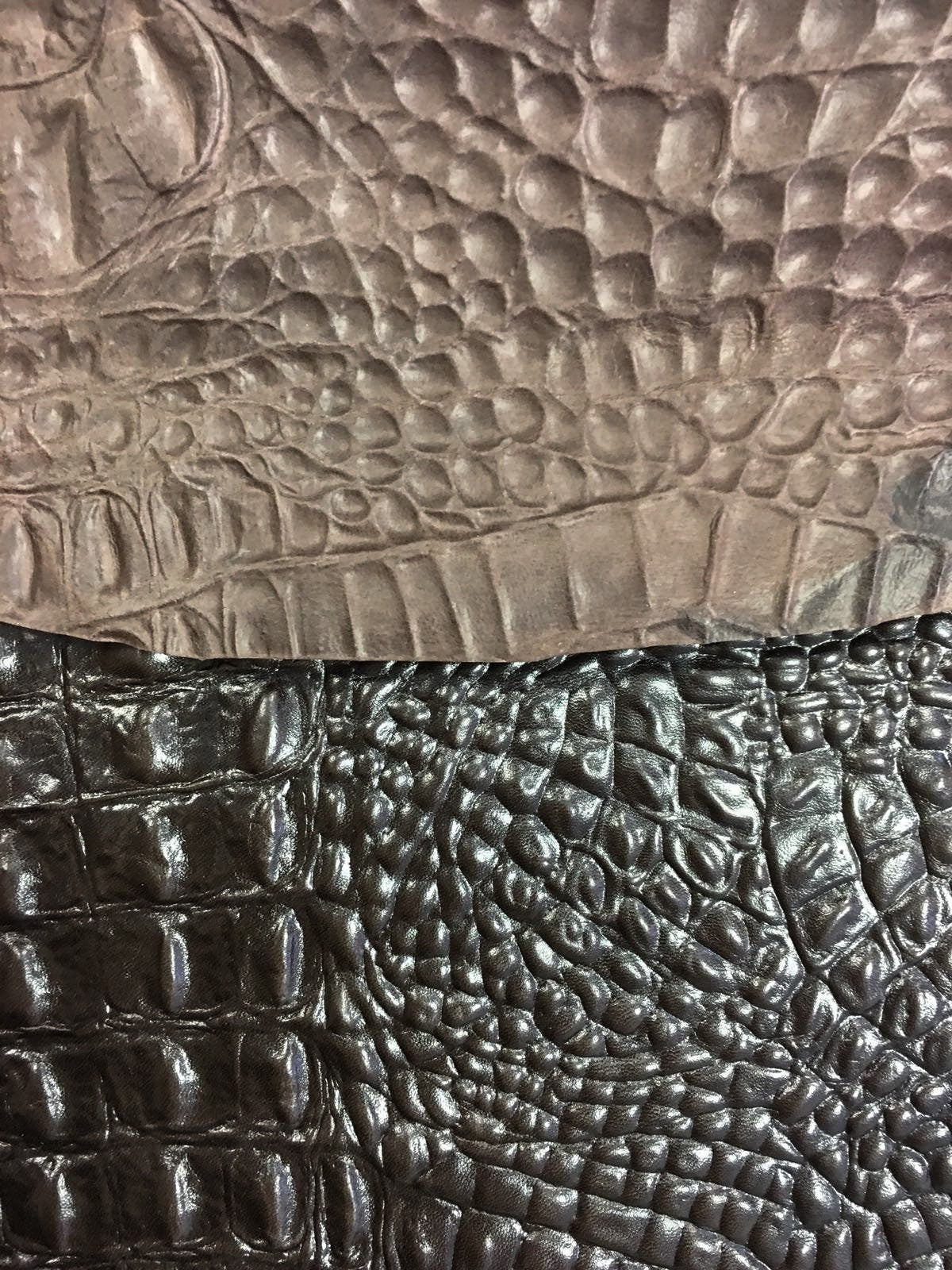 Soft, thin 1oz dark croco leather called "COFFEE BEAN"