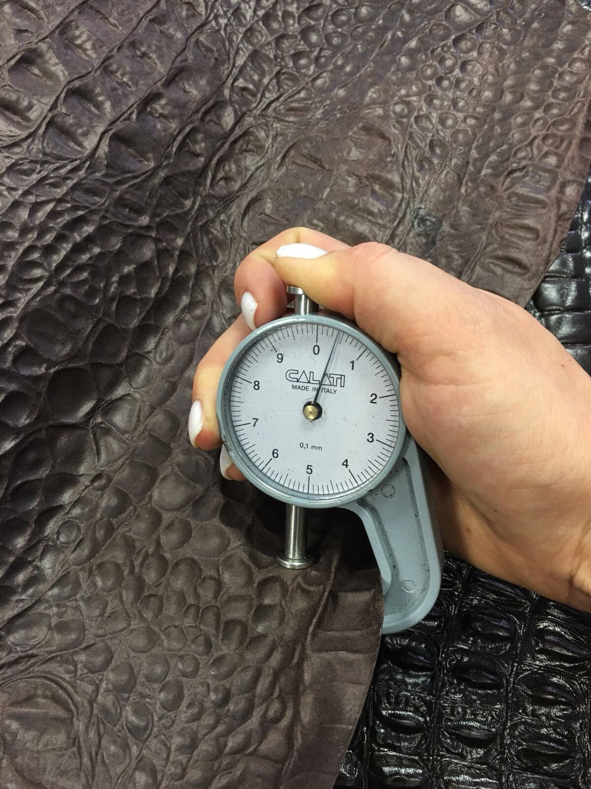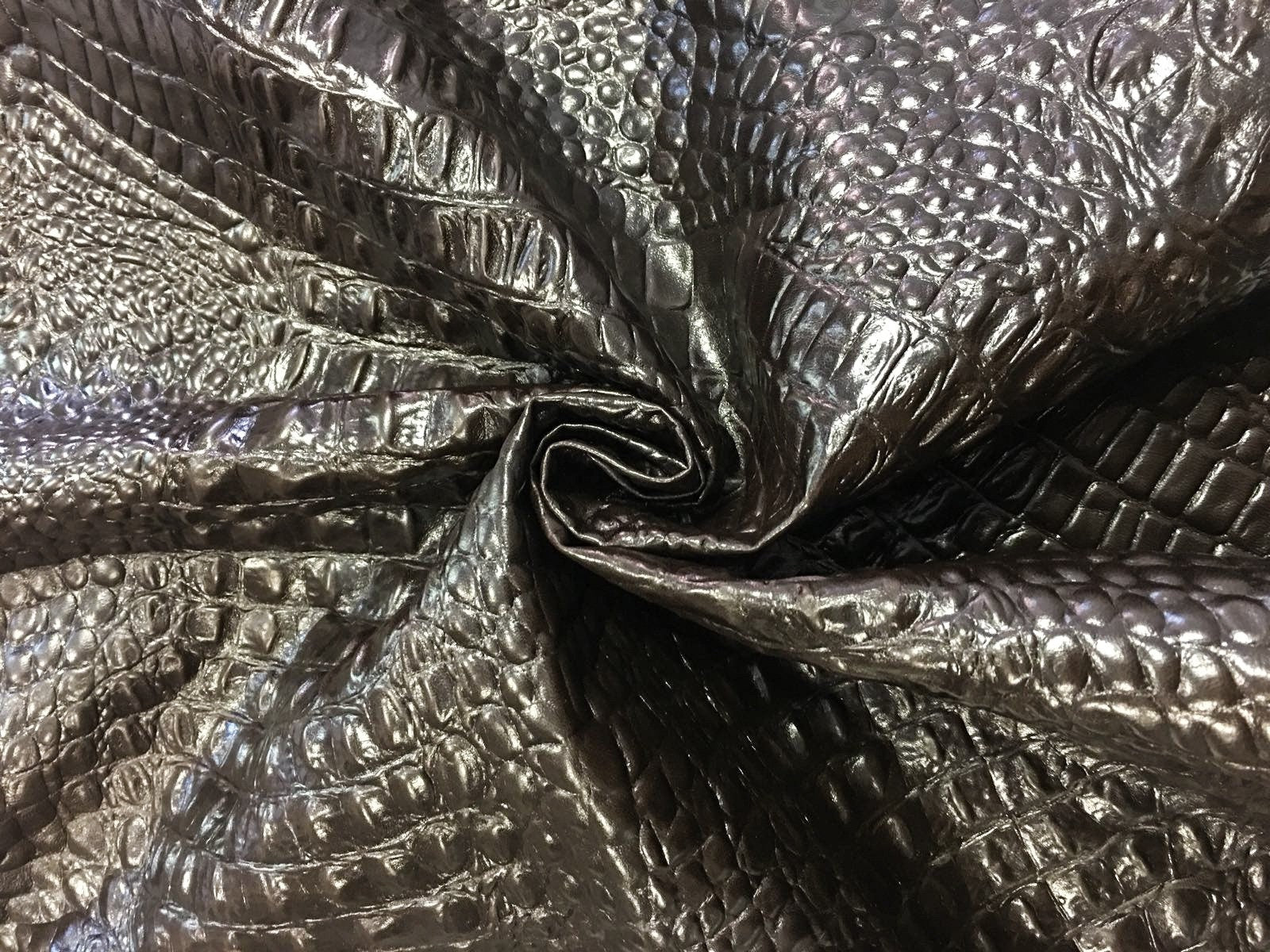 -Bubble type Leather print, dark brown crocodile leather print material, Brown lambskin leather sheets, Textured lambskin, hides. Genuine leather for sewing, Lightweight leather, Snake leather print. This thin Leather is good for sewing, even with Your home sewing machine. This brown leather is thin and little bit stiff. Will work as crocodile bag or croco jacket!