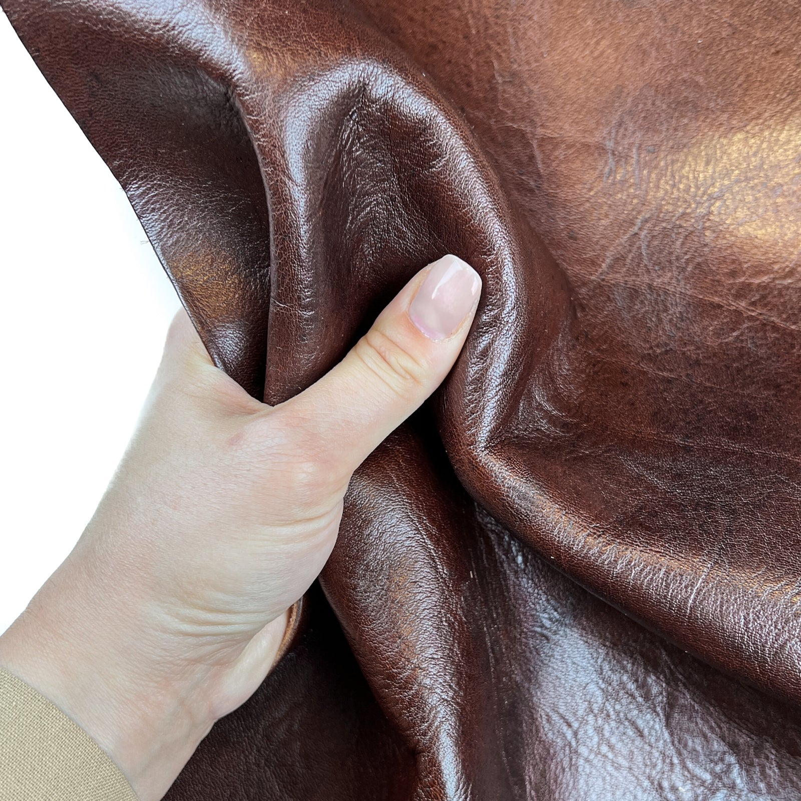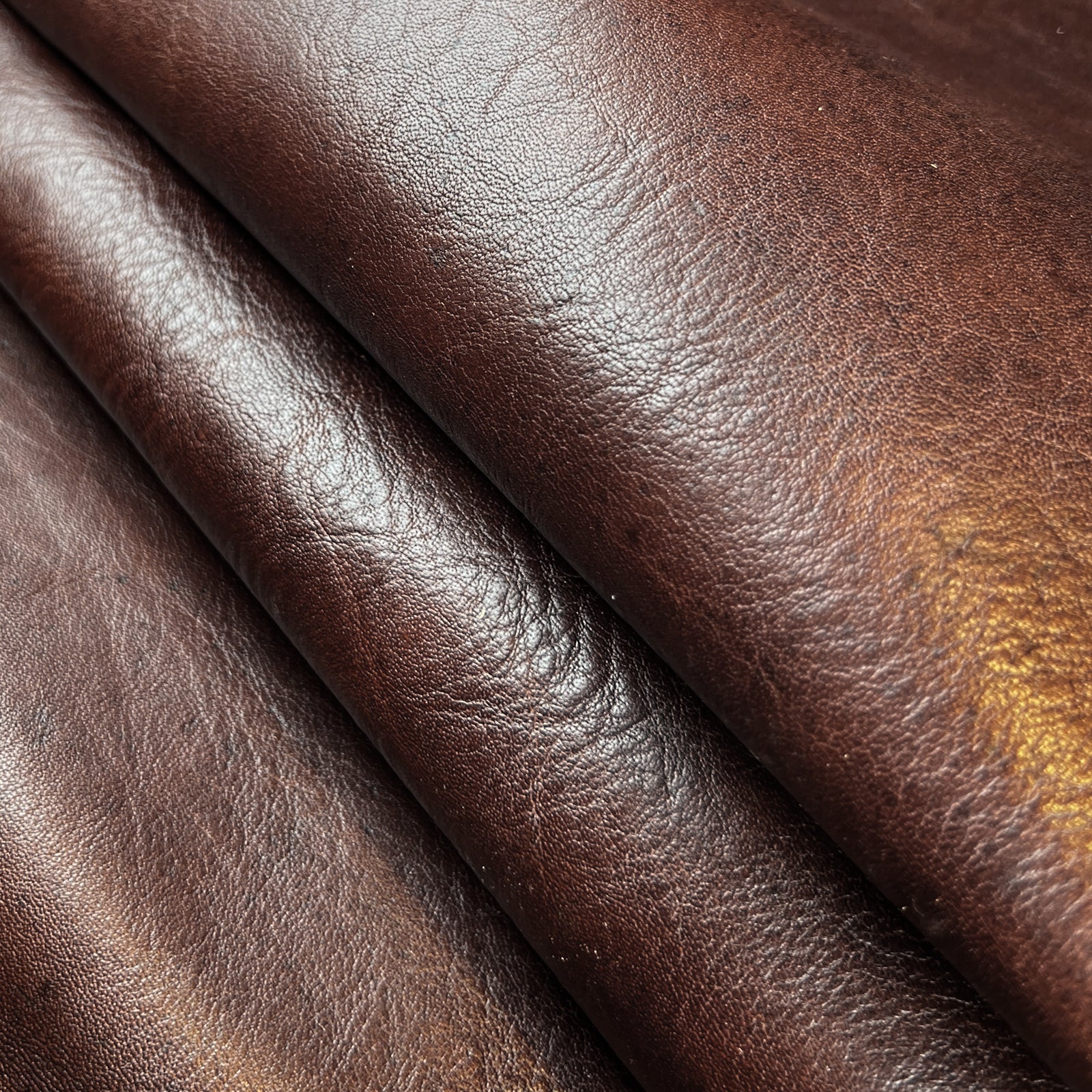 Brown Vegetable Tan leather hides with texture. The leather fabric has a textured finish. Amazing leather for bag and purse crafters will be long-lasting. Our mission is to provide only the highest quality Italian leather to other leather workers, crafters of all kinds, small businesses, or shops for your own projects.