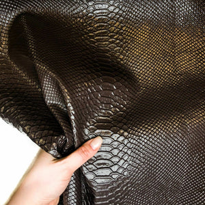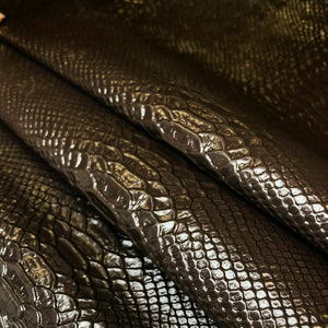 High-quality metallic lambskin leather fabric hides with snake print. Dark brown leather for your best projects! Our mission is to provide only the best quality Italian leather to other leather workers, crafters of all kinds, small businesses or Etsy shop for your own projects.
