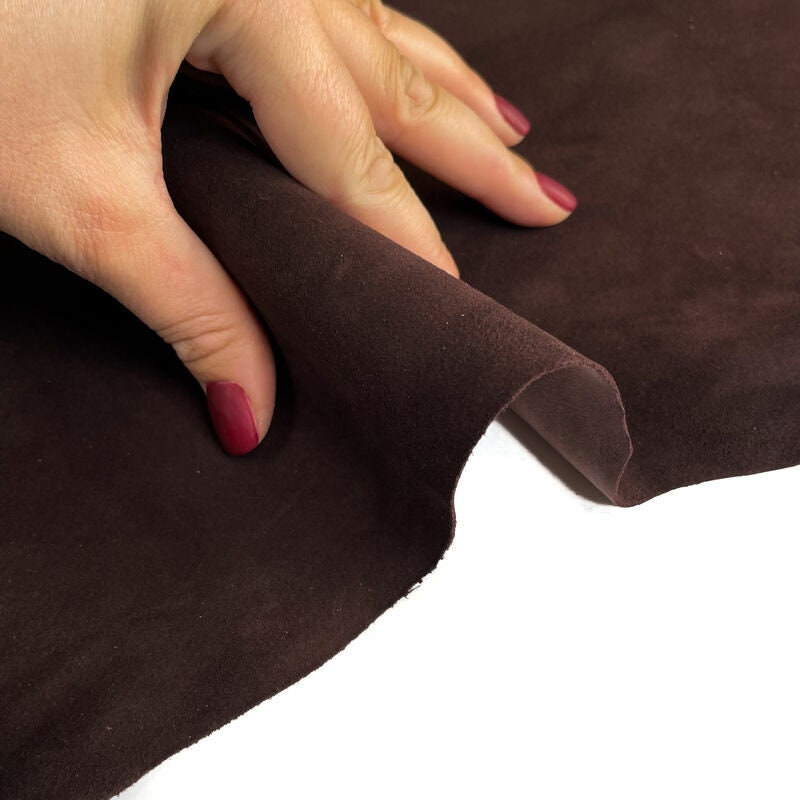 High-quality suede leather fabric hides in dark coffee color. Have your cup of coffee while working with this great product! Amazing velour for your best projects! Our mission is to provide only the best quality Italian leather samples to other leather workers, crafters of all kinds, small businesses or Etsy shop for your own projects.