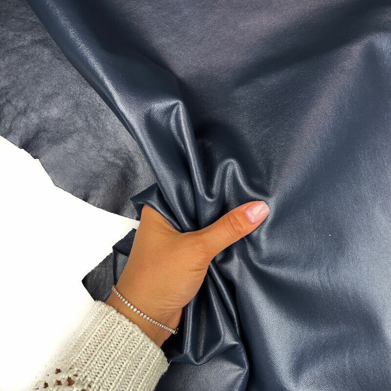 - Dark blue is never out of style! Navy lambskin leather for sewing and crafting. Pleasant and soft to touch. Not too thick. Will be perfect for all kinds of your diy projects!