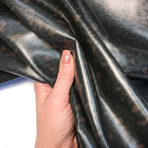 -Shiny, smooth and quite thin lambskin leather pieces for sewing and handcrafting. Dark brown leopard spot print. Genuine sheep skin pieces with leopard skin print.