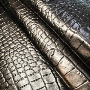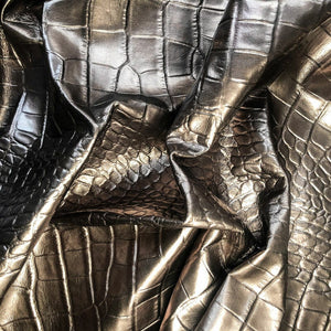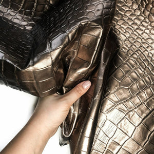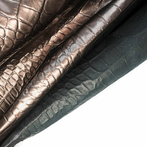 High-quality lambskin leather fabric hides in dark rose gold color. Perfect crocodile print for your best projects! Our mission is to provide only the best quality Italian leather samples to other...