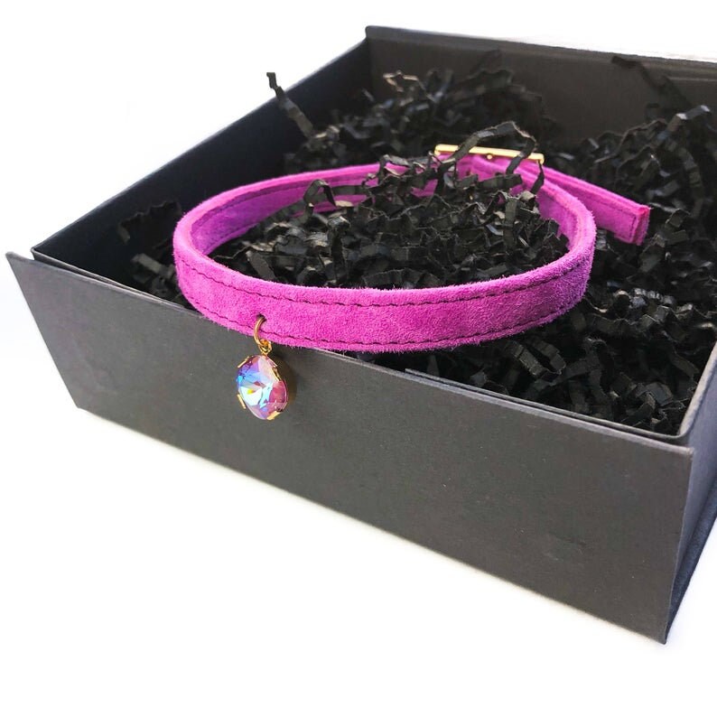 Unique luxury handcrafted COLORFUL Leather choker. Crafted from the best quality Italian suede and lambskin with love. Genuine Swarovski crystals are used to make these one of a kind pieces. Packed in a gift box for a beautiful gift for your loved ones. Can be worn as a bracelet around your wrist.