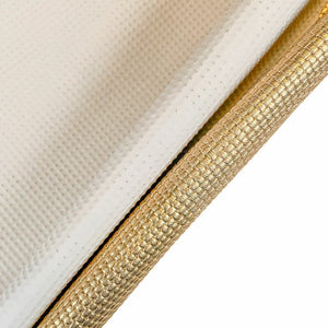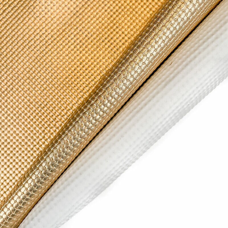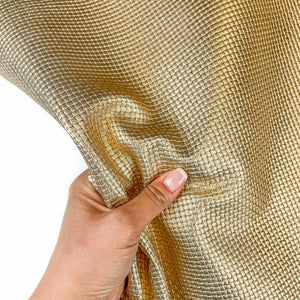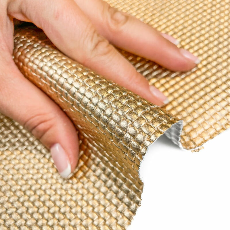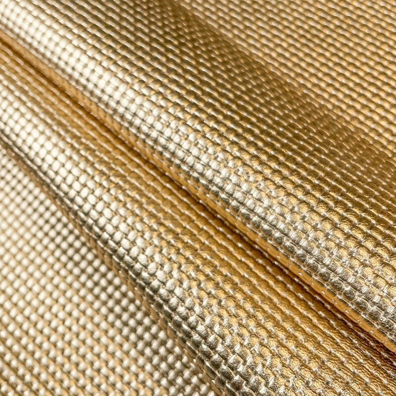 -Be unique! Gold metallic leather with woven print effect. Unique leather with textured braided print all over. Will be perfect for bags, purses, wallets etc. Backside is off white.