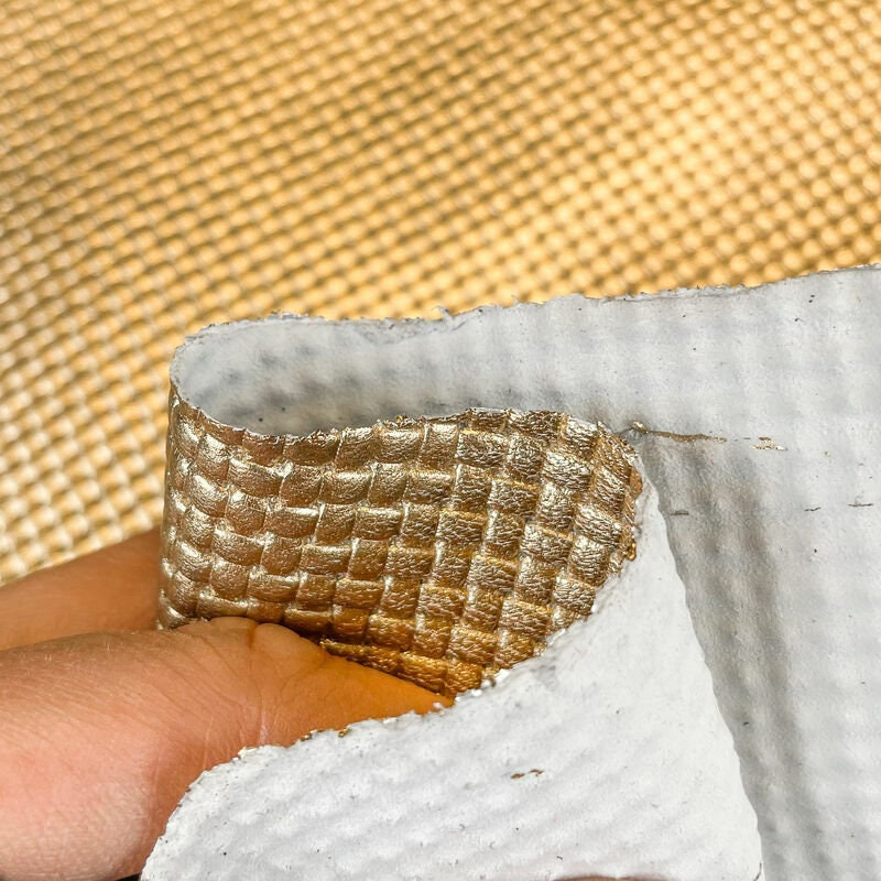 Gold leather pieces with gold metallic braided. Textured leather for your best projects! Our mission is to provide only the best quality Italian leather to other leather workers, crafters of all...