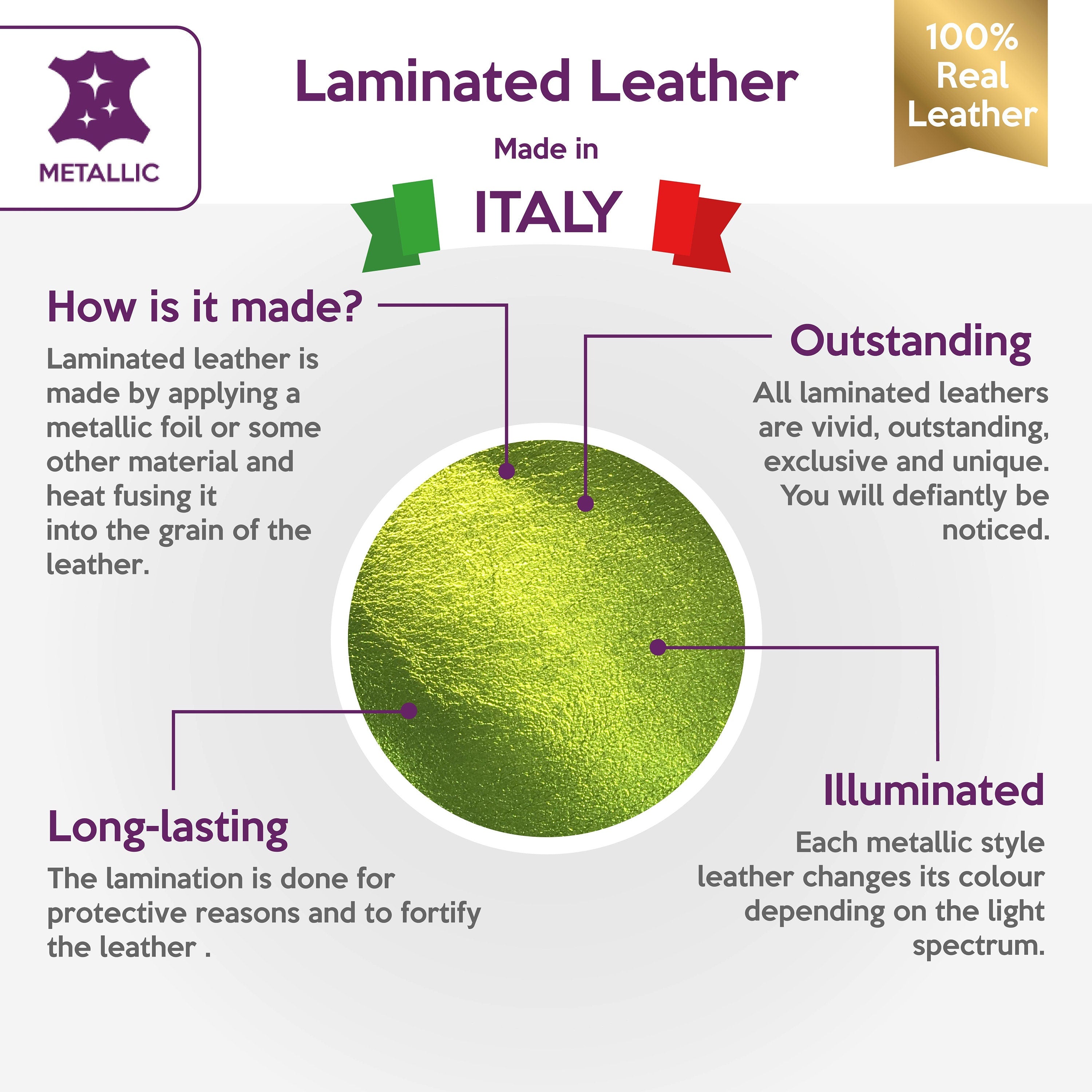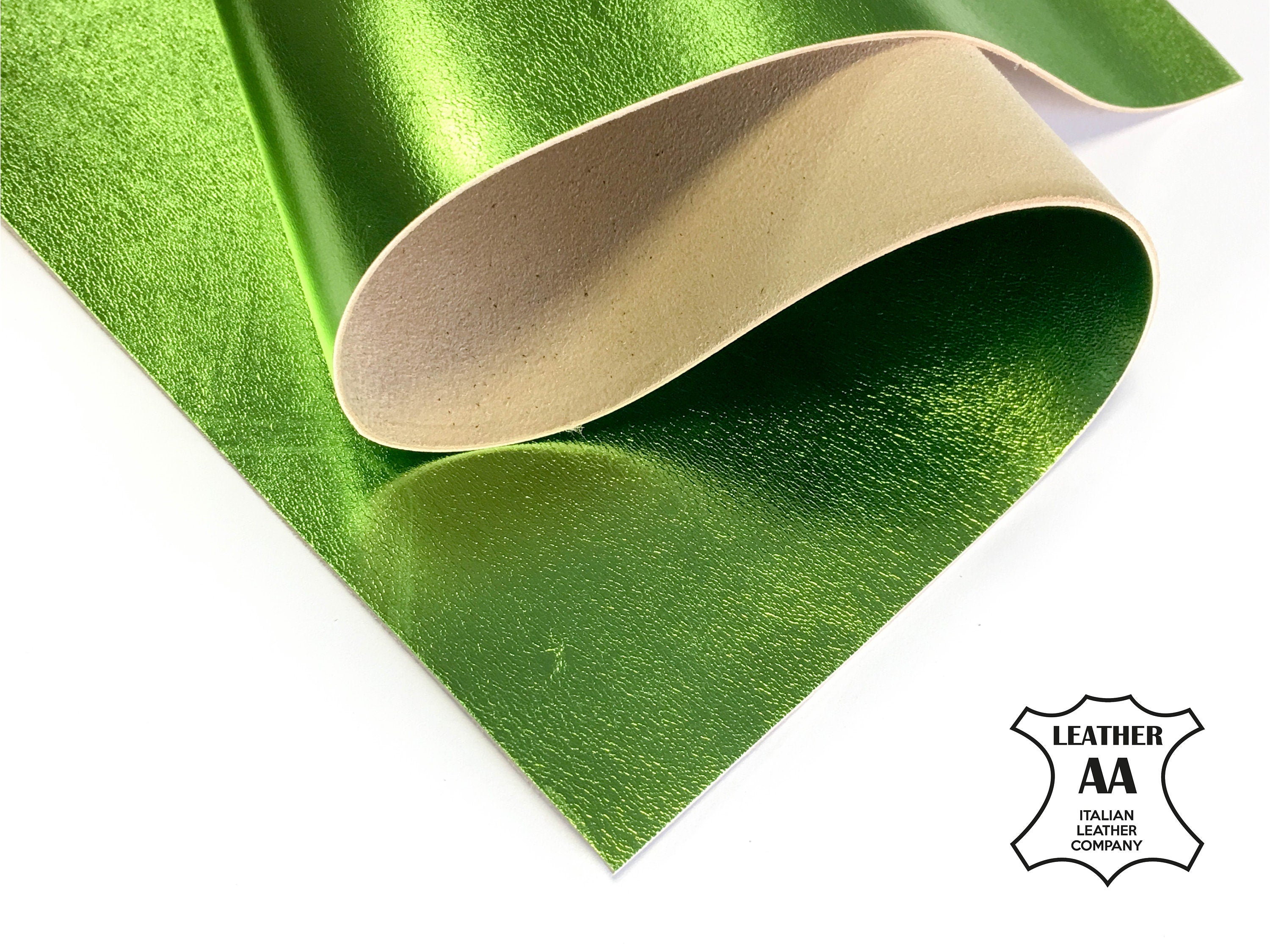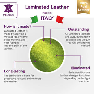 Light Green Metallic Leather sheets are 100% real Sheep Leather, made in best Italian tanneries.