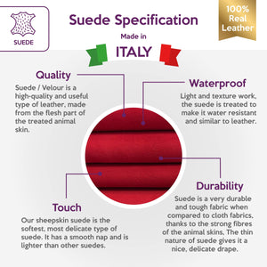 High-quality suede leather. Soft deep red leather material for your best projects! Our mission is to provide only the best quality Italian leather to other leather workers, crafters of all kinds, small businesses, or Etsy shop for your own projects.