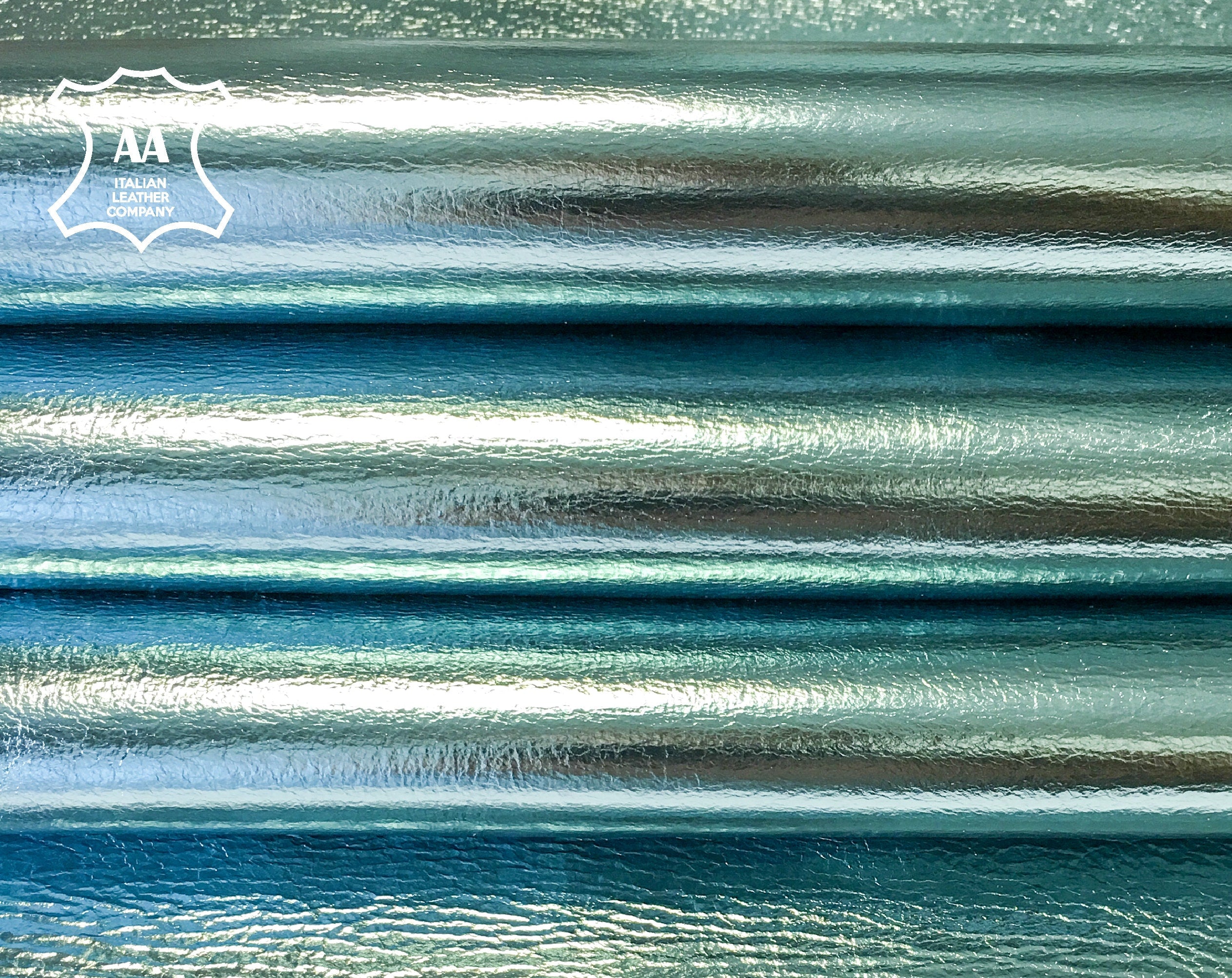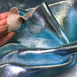 High-quality lambskin leather fabric hides in a beautiful metallic light blue color. Metallic shine all over the leather! Our mission is to provide only the best quality Italian leather samples to other leather workers, crafters of all kinds, small businesses or Etsy shop for your own projects.