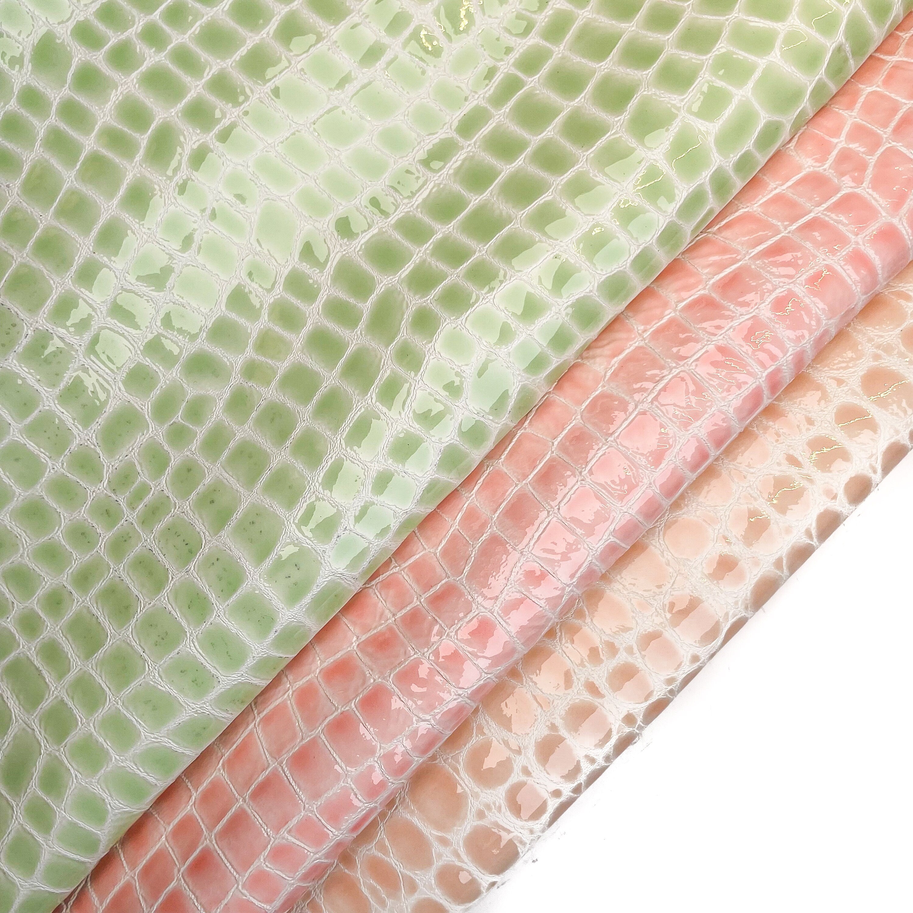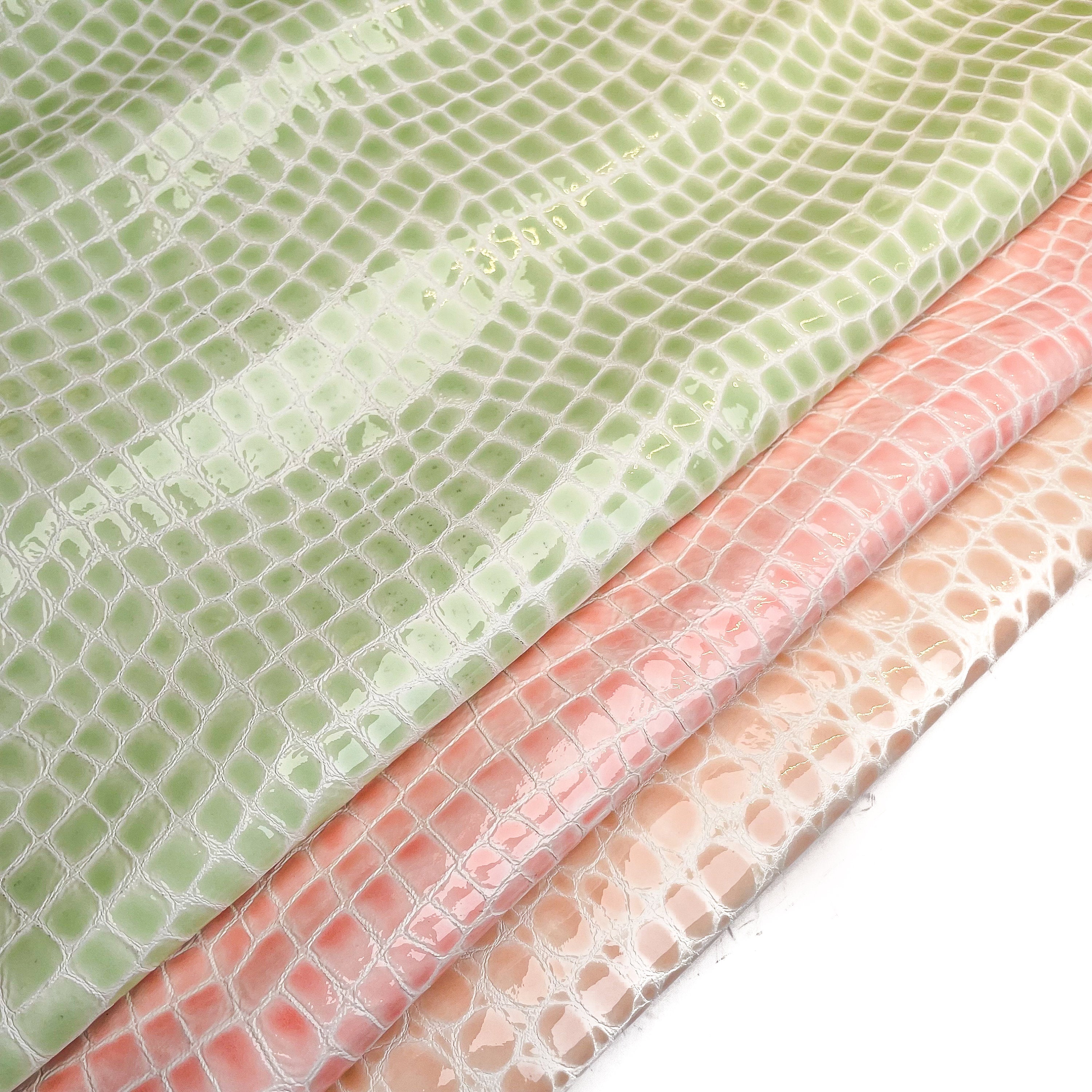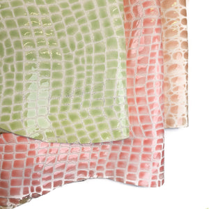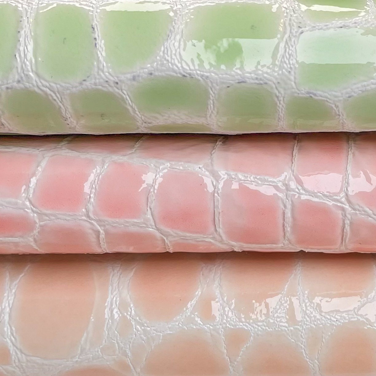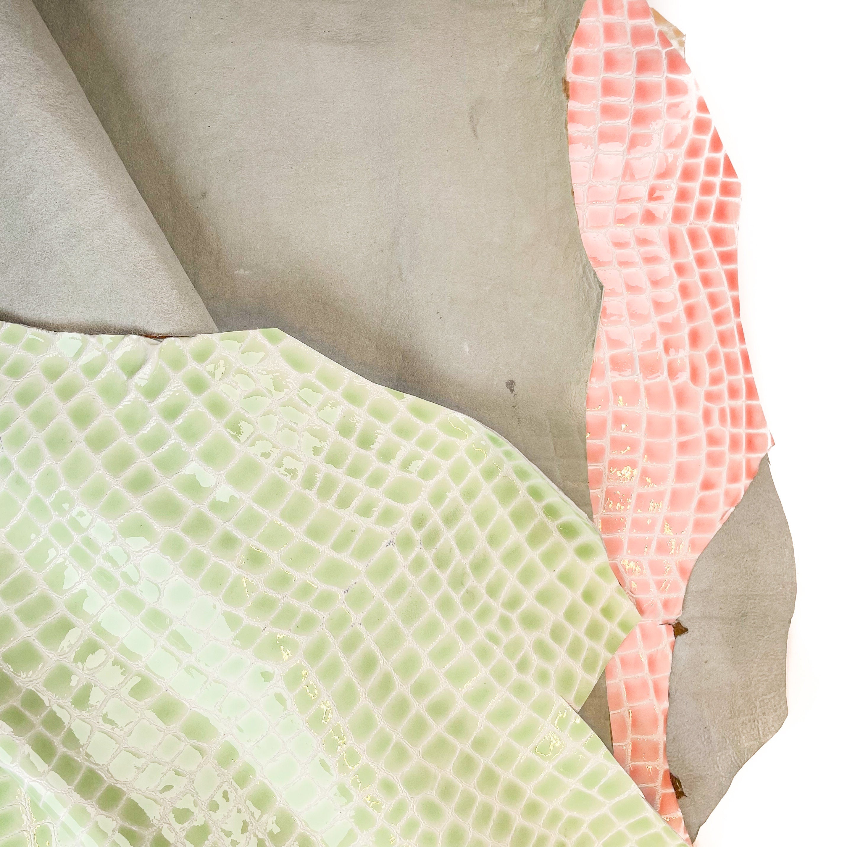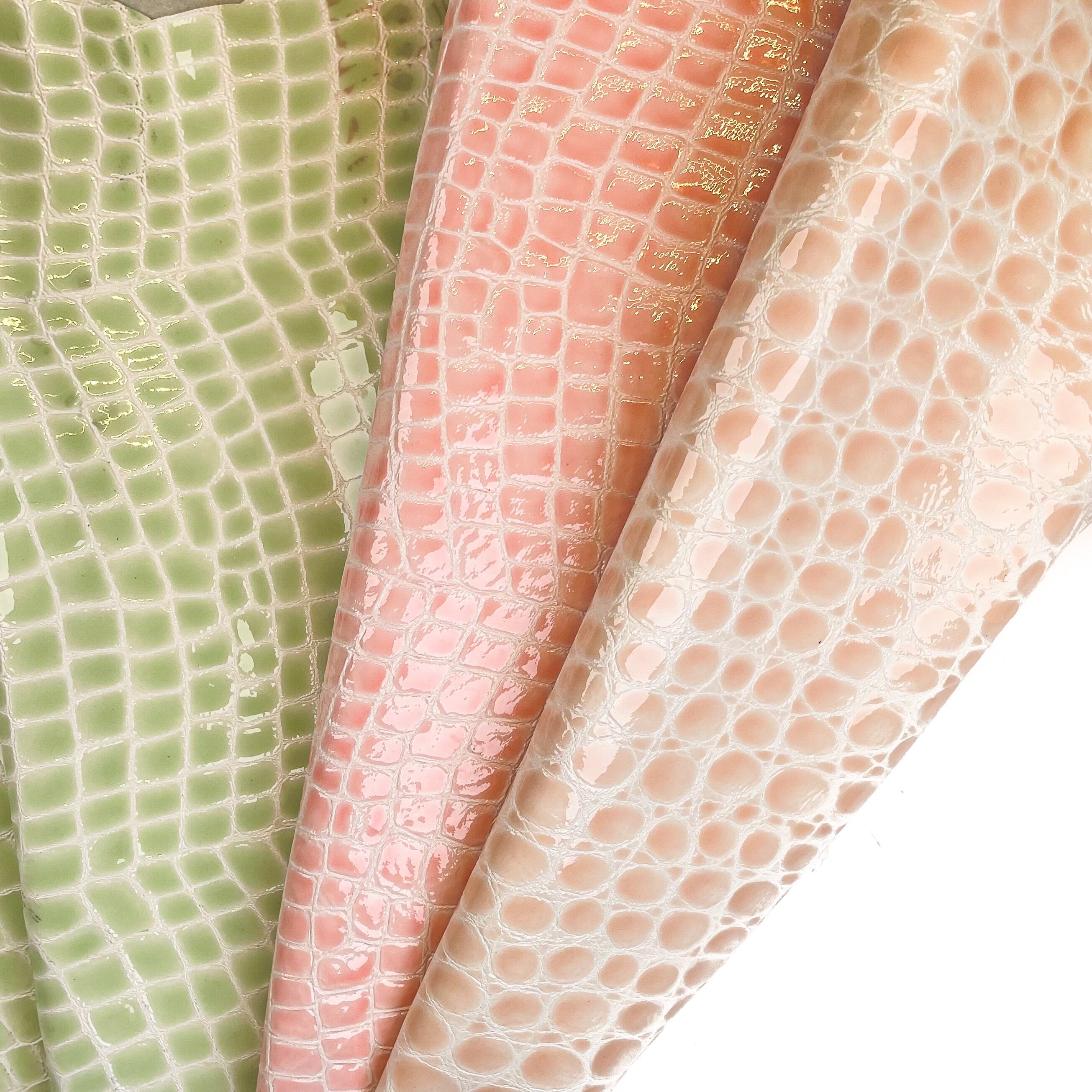 - Glossy pastel leather with reptile print. Thick leather material. Choose your color. Natural lambskin hides from the best Italian tannery. Perfect leather for crafting.