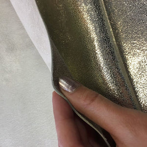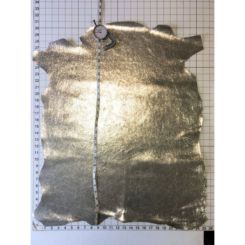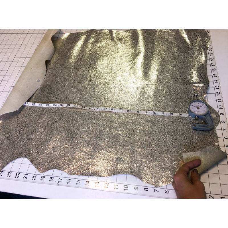 Lightweight leather from Italy, Golden leather sheets are good for sewing, clothing made out of this leather will look fabulous. Light gold Metallic leather pieces are good for jackets, skirts, tops, pants, accessories, and even leather jewelry.