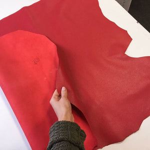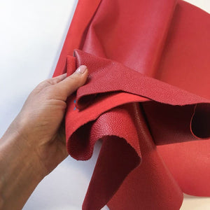 Red lambskin leather for sewing, leather pieces, textured leather