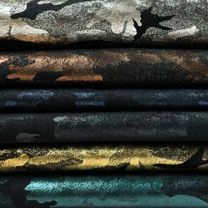 - Shiny metallic leather with camouflage print. Crafting pieces for sewing. Perfect metallic leather for any projects. DIY leather. Choose your color and shine bright!