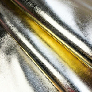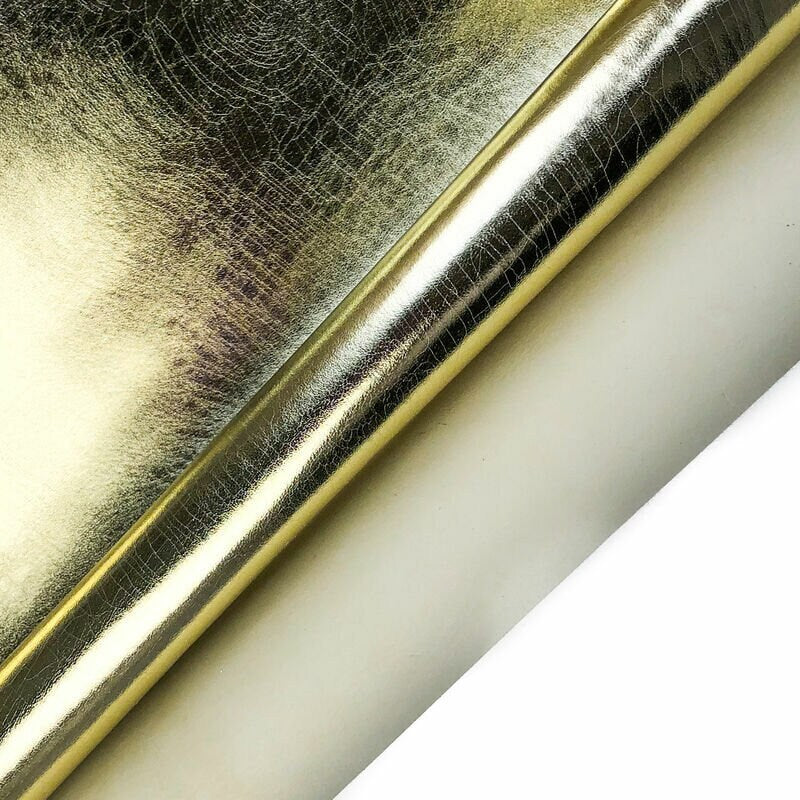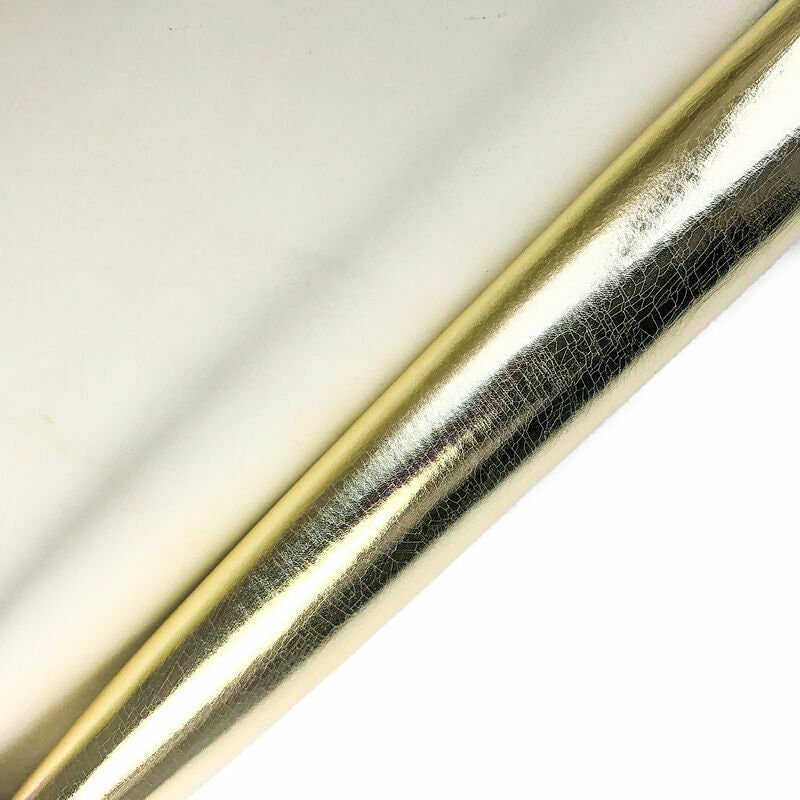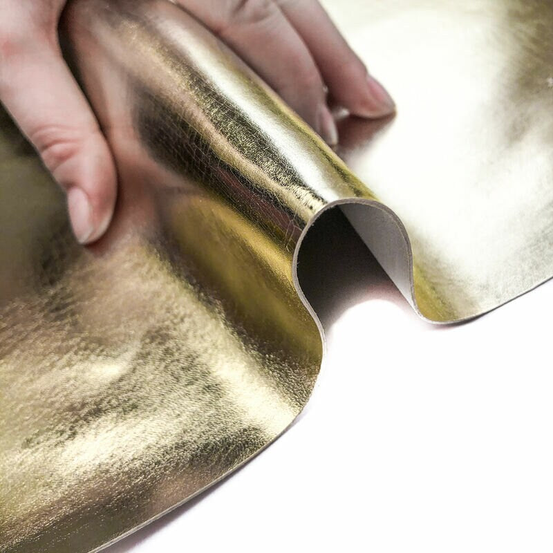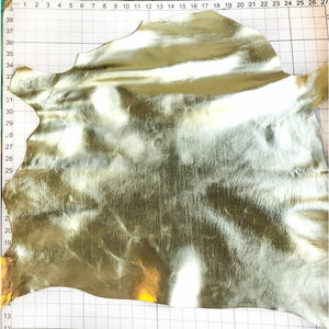 - Cracked mirror metallic foil leather pieces. Natural metallic light gold lambskin hides from the best Italian tannery. Perfect leather for Christmas crafts. Shiny leather for your best projects!