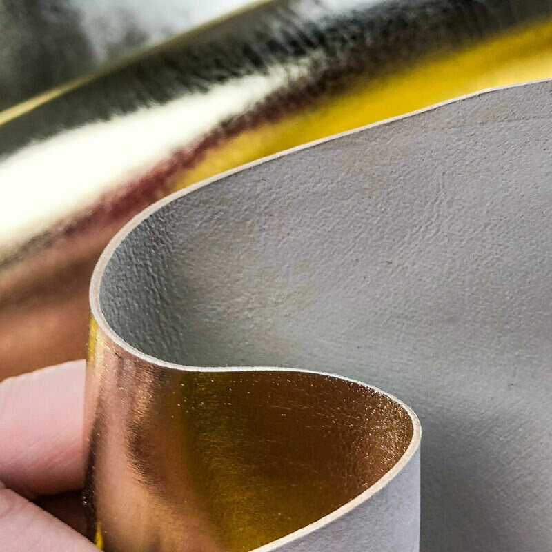 High-quality metallic lambskin leather in light gold color. Mirror metallic leather material for your best projects! Our mission is to provide only the best quality Italian leather to other leather workers, crafters of all kinds, small businesses, or Etsy shop for your own projects.