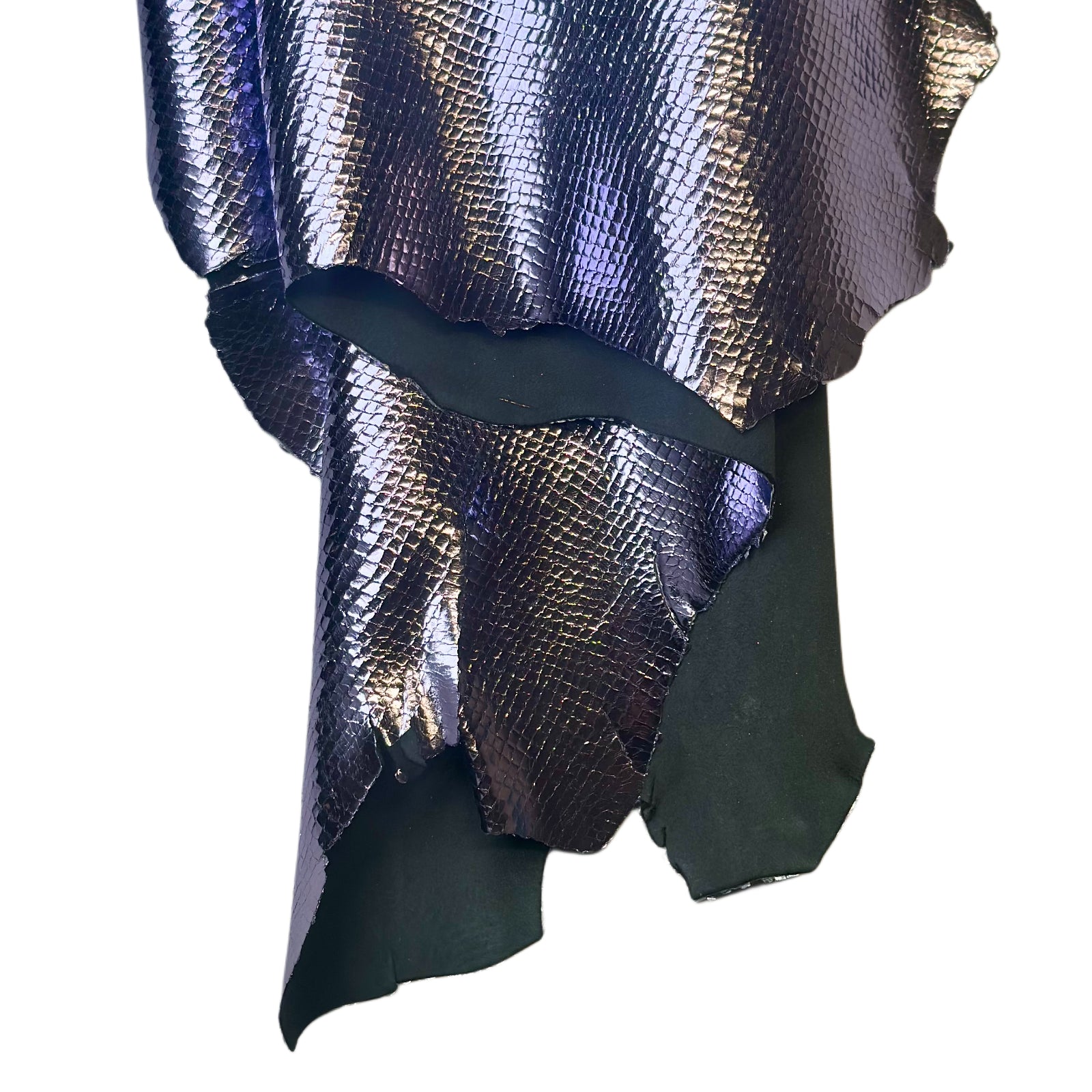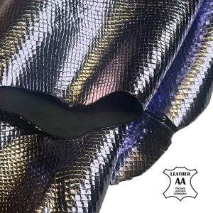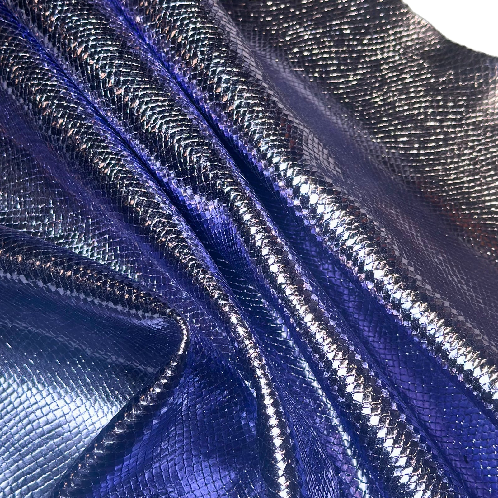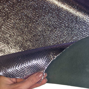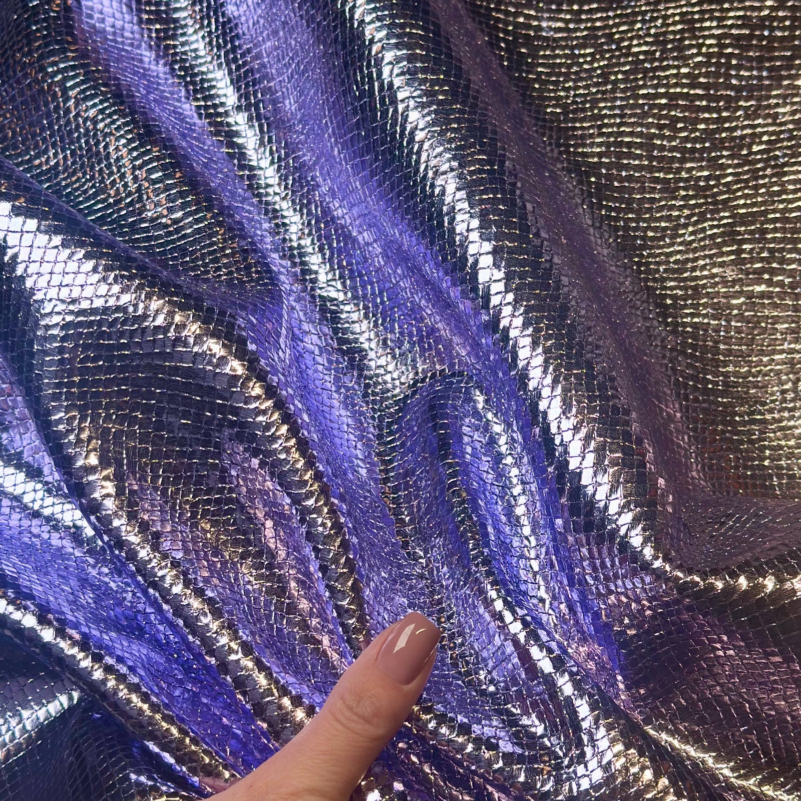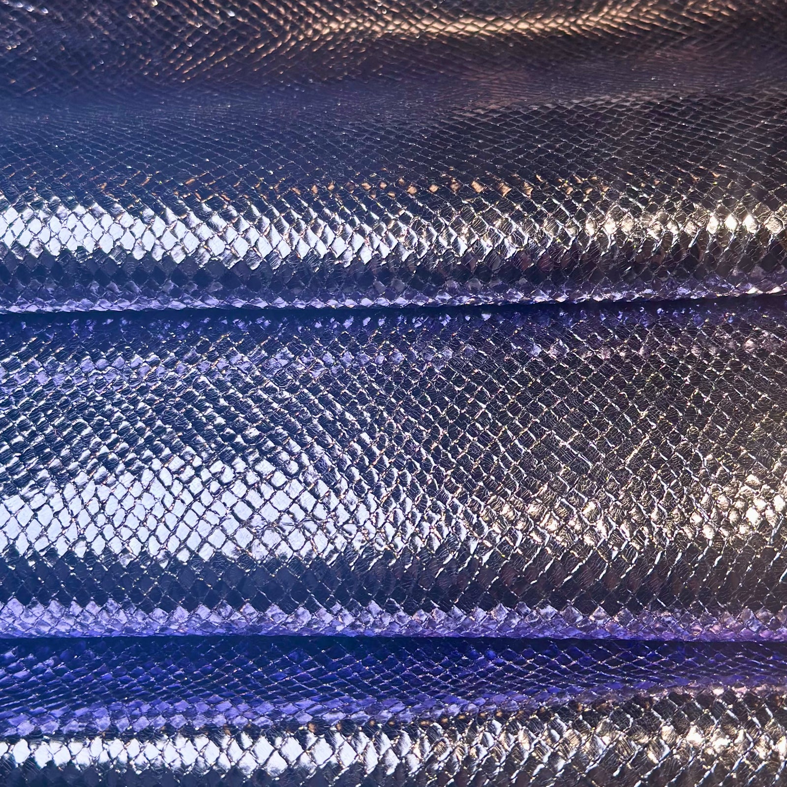 This is a striking, high-end genuine lambskin leather featuring a lizard-inspired embossed texture and a rich metallic purple finish. Soft, supple, and lightweight, yet visually bold - perfect for designers and makers who want something truly special.