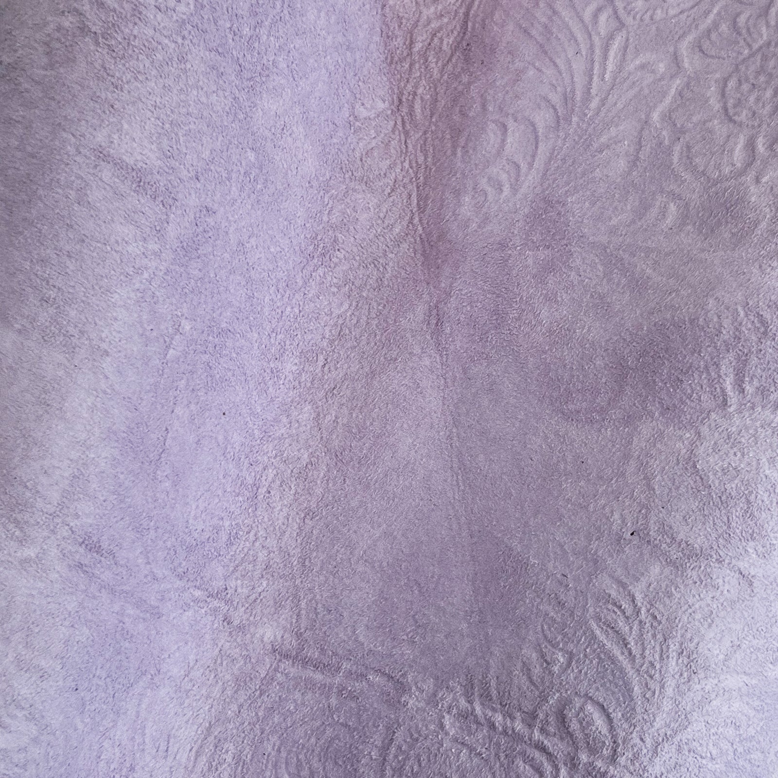 Metallic purple lambskin leather with flower print. Shiny textured hides. Amazing leather for bag and purse crafters will be long-lasting. Our mission is to provide only the highest quality Italian leather...