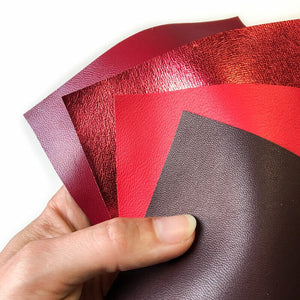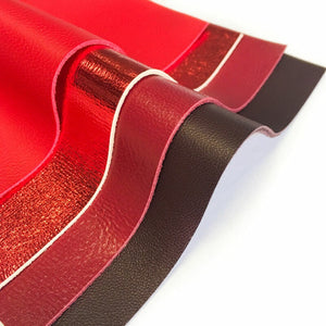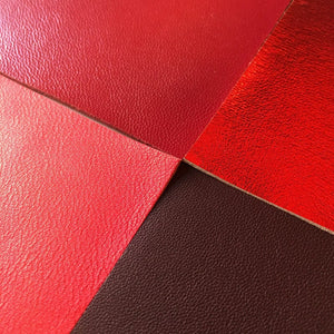 Color: Multiple red colors : 1 metallic ruby red, 1 bright racing red leather piece, 1 spisy chili red and 1 port royal sheet.