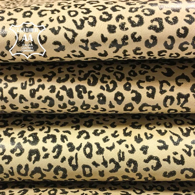 -LEOPARD Leather print. Small leopard print. Genuine Leather material for sewing. Fantastic Leopard skin print on lambskin leather. Cute Leopard print. Brown Lambskin leather pieces. Italian quality leather fabric.