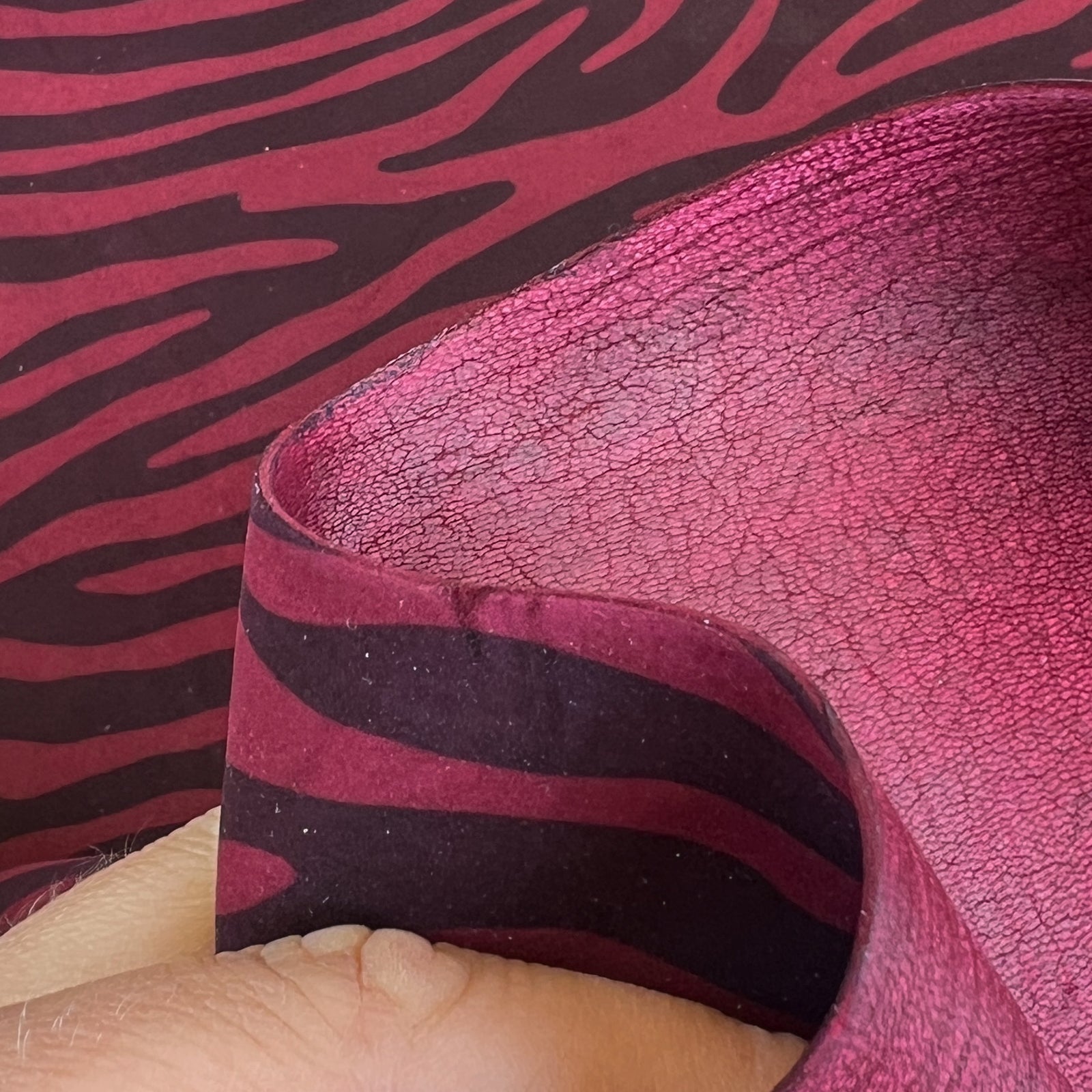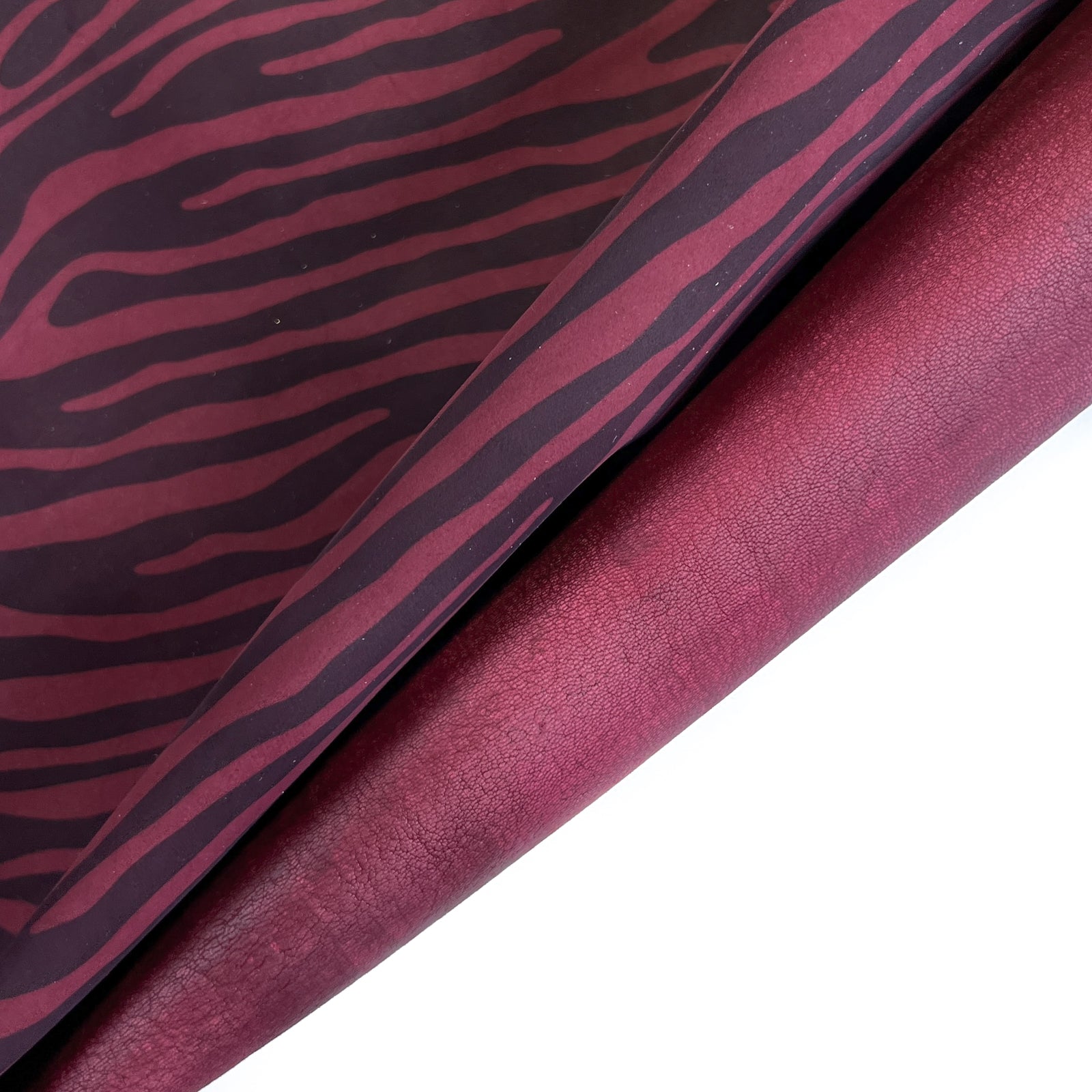 Dark burgundy red lambskin leather with always trending ZEBRA print. Very soft suede leather hides. Amazing leather for bag and purse crafters will be long-lasting. Our mission is to provide only the highest quality Italian leather to other leather workers, crafters of all kinds, small businesses, or shops for your projects.