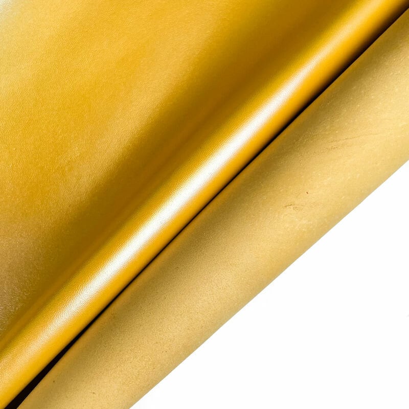 High-quality lambskin leather fabric hides in sunny yellow metallic perlamuter color. Amazing pieces for your best projects! Our mission is to provide only the best quality Italian leather samples to other leather workers, crafters of all kinds, small businesses or Etsy shop for your own projects.