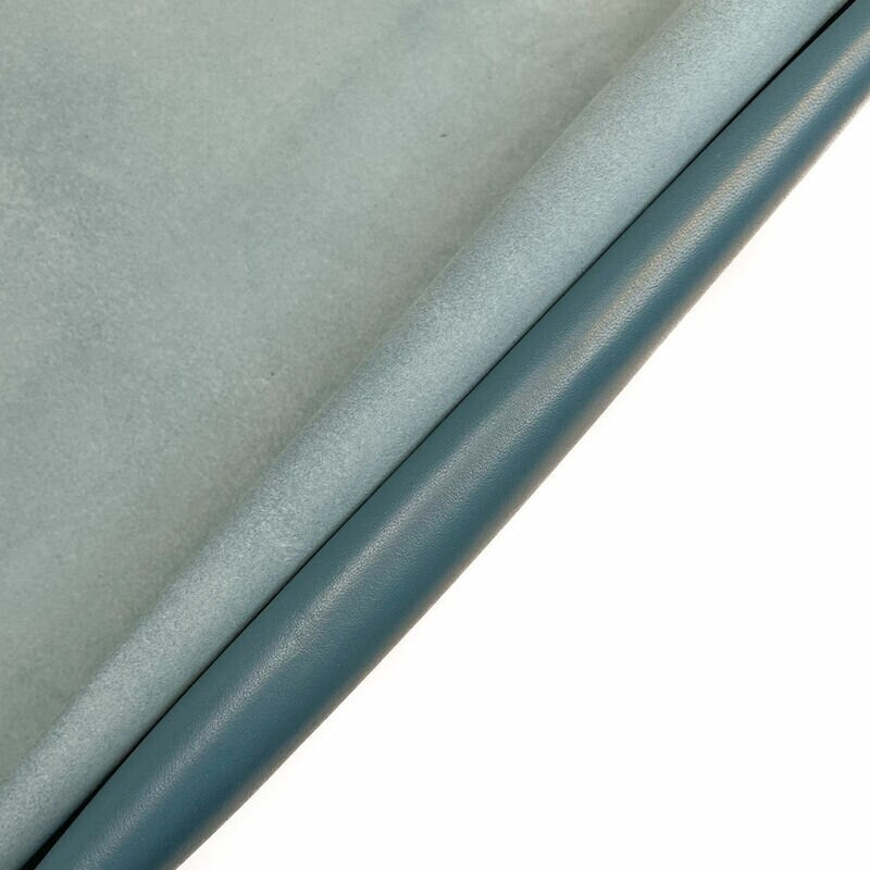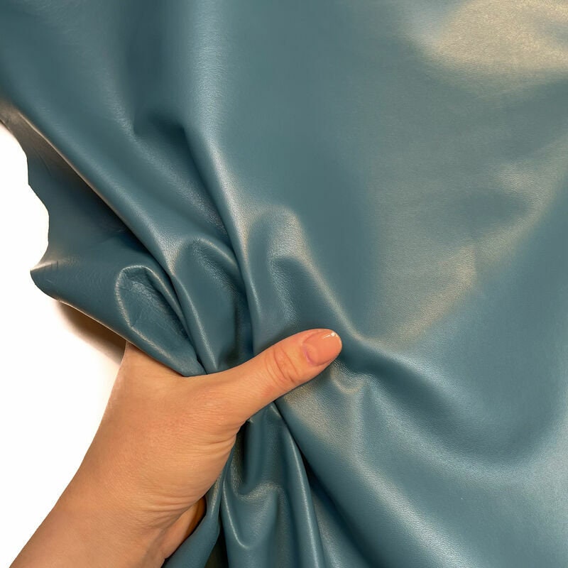 High-quality lambskin leather fabric hides in teal blue color. Soft lambskin pieces for your best projects! Our mission is to provide only the best quality Italian leather samples to other leather...