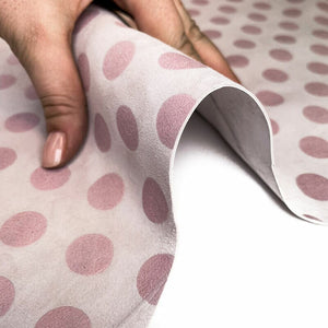 White Lambskin Suede With Pink Dots 1mm/2.5oz DUSTY PINK DOTS 1090