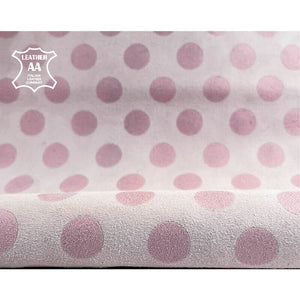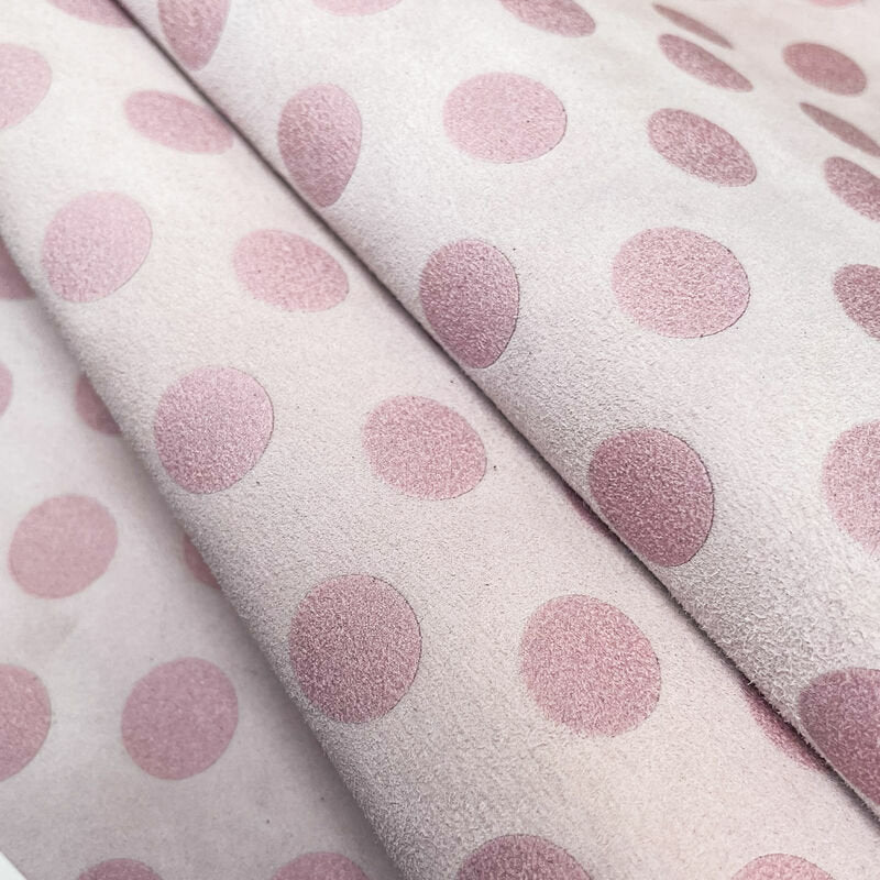 - Soft suede leather pieces. Natural lambskin hides from the best Italian tannery. Perfect leather for sewing. Pink Dots all over the leather.