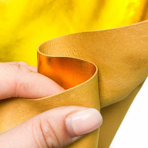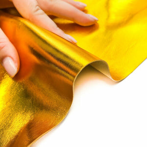 High-quality metallic lambskin leather. Metallic yellow mirror leather for your best projects! Our mission is to provide only the best quality Italian leather to other leather workers, crafters of all kinds, small businesses or Etsy shop for your own projects.
