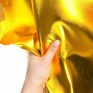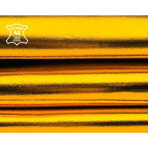 - Bright YELLOW metallic leather hides. Shiny fabric material. Genuine lambskin pieces. Mirror effect on leather. Backside is yellow. Perfect leather for sewing.