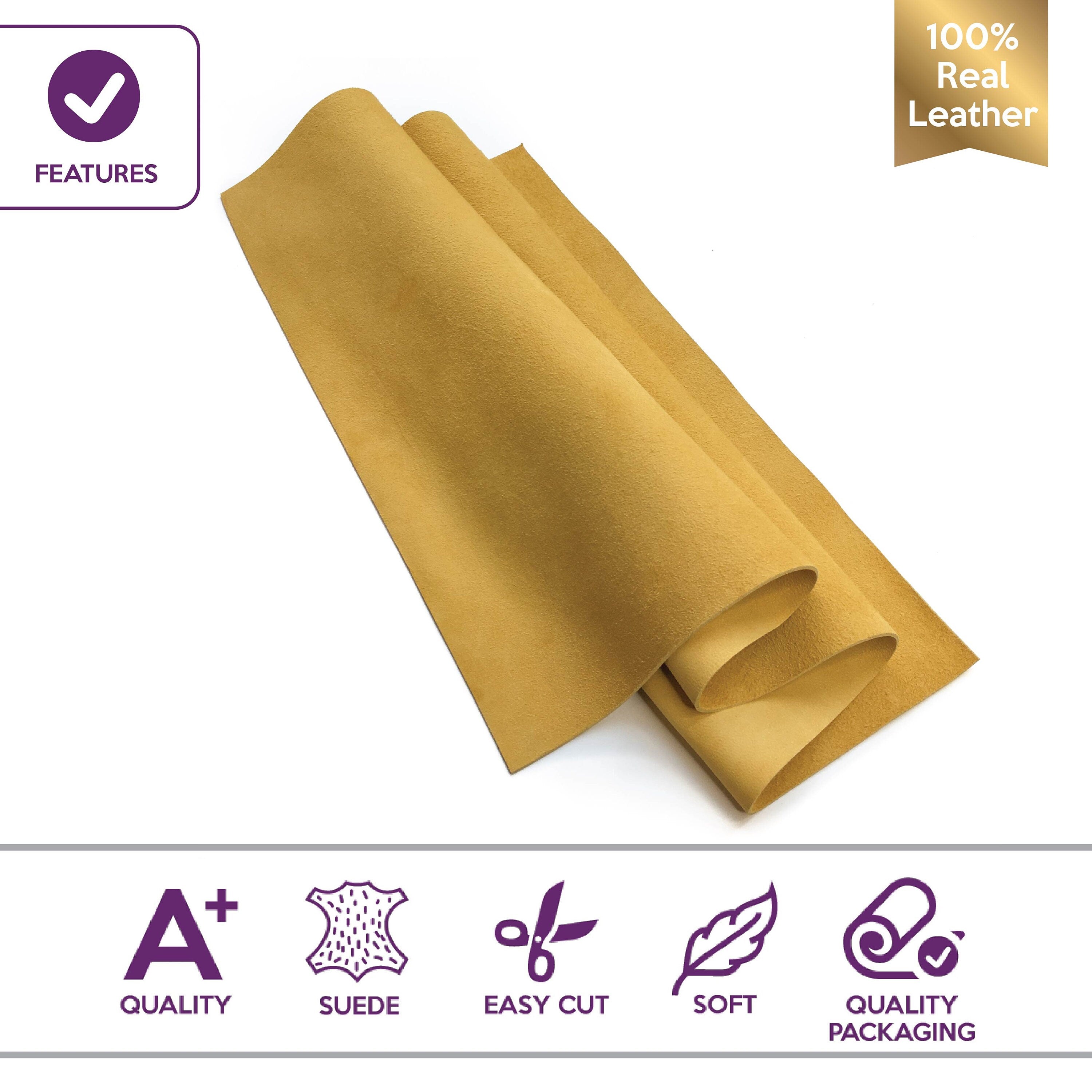 -Bright yellow suede leather sheets for handcrafting. Soft, pleasant and really nice velour material. Colored throughout - back is in same color as front. Warm, pure color. Very soft yellow suede leather scraps, soft and rich color. Quite thick, pliable suede pieces.