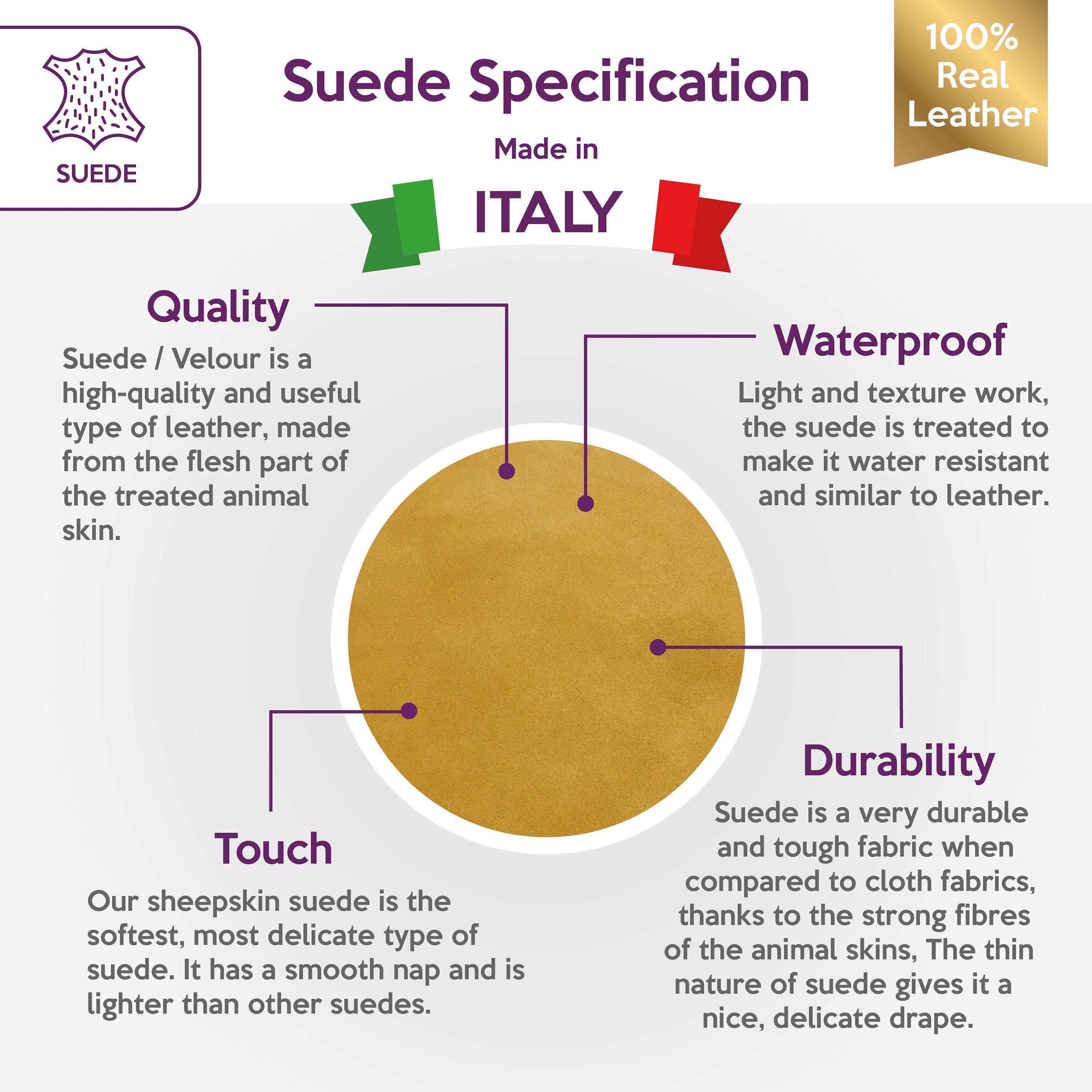 Yellow Genuine sheep suede, 100% Natural Italian leather.