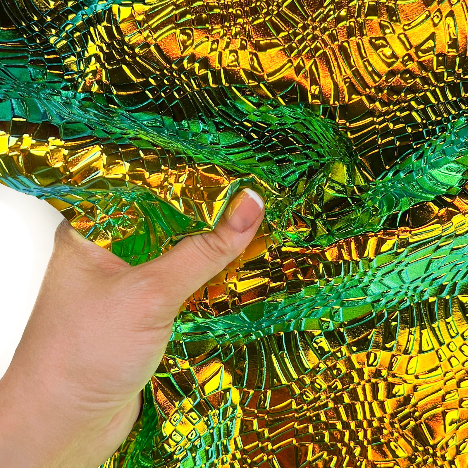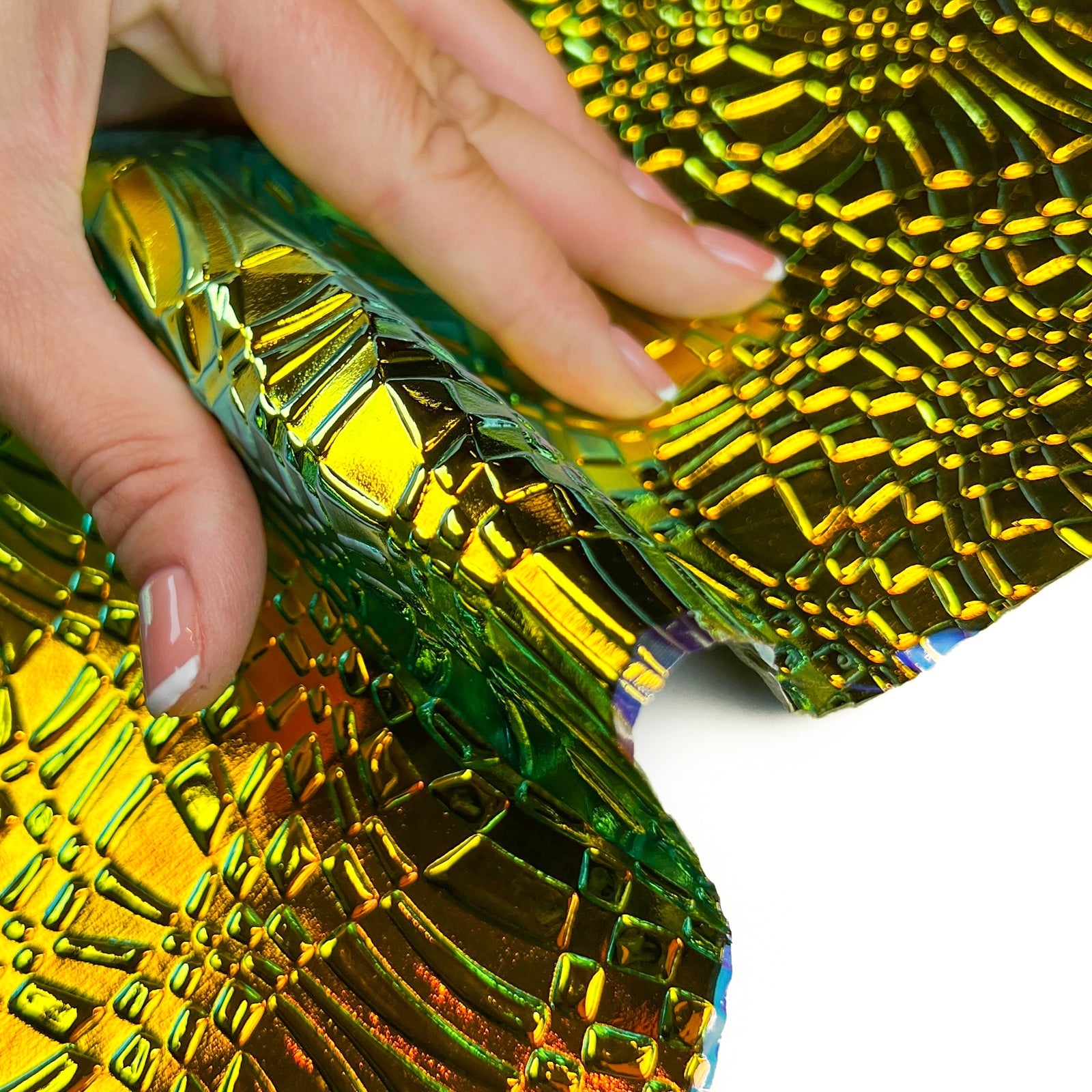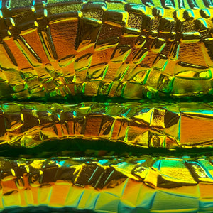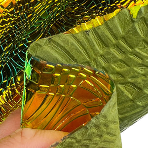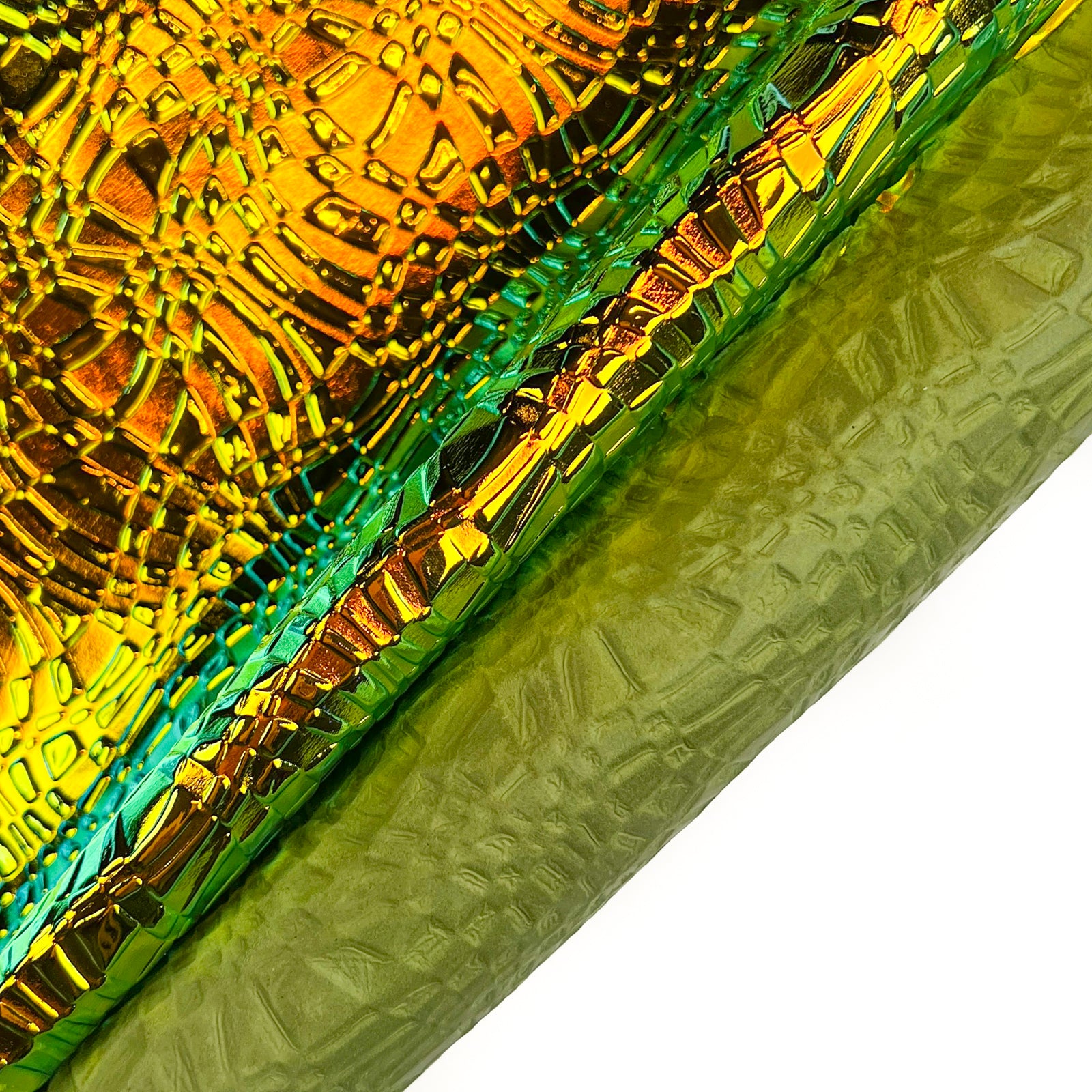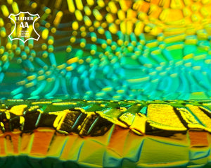 3D Holographic Shiny Lambskin Leather With Print 0.6mm/1.5oz / GREEN HOLO 1449