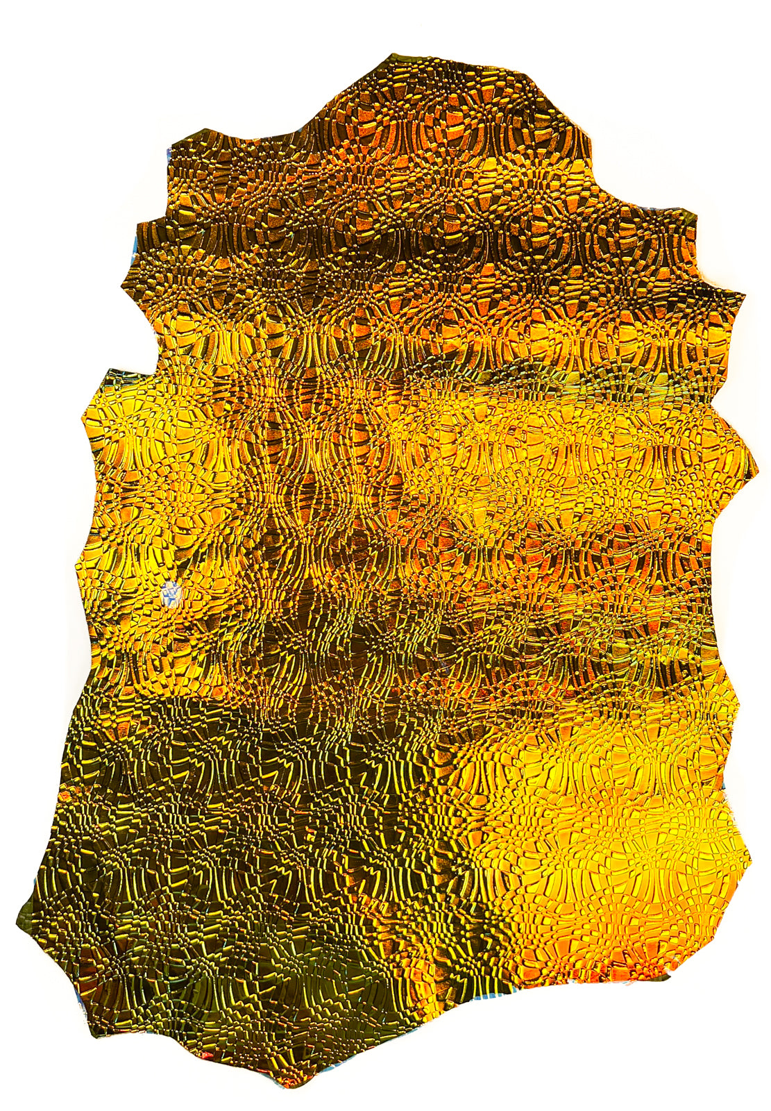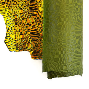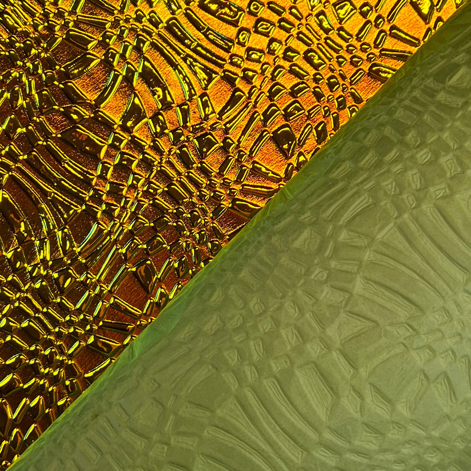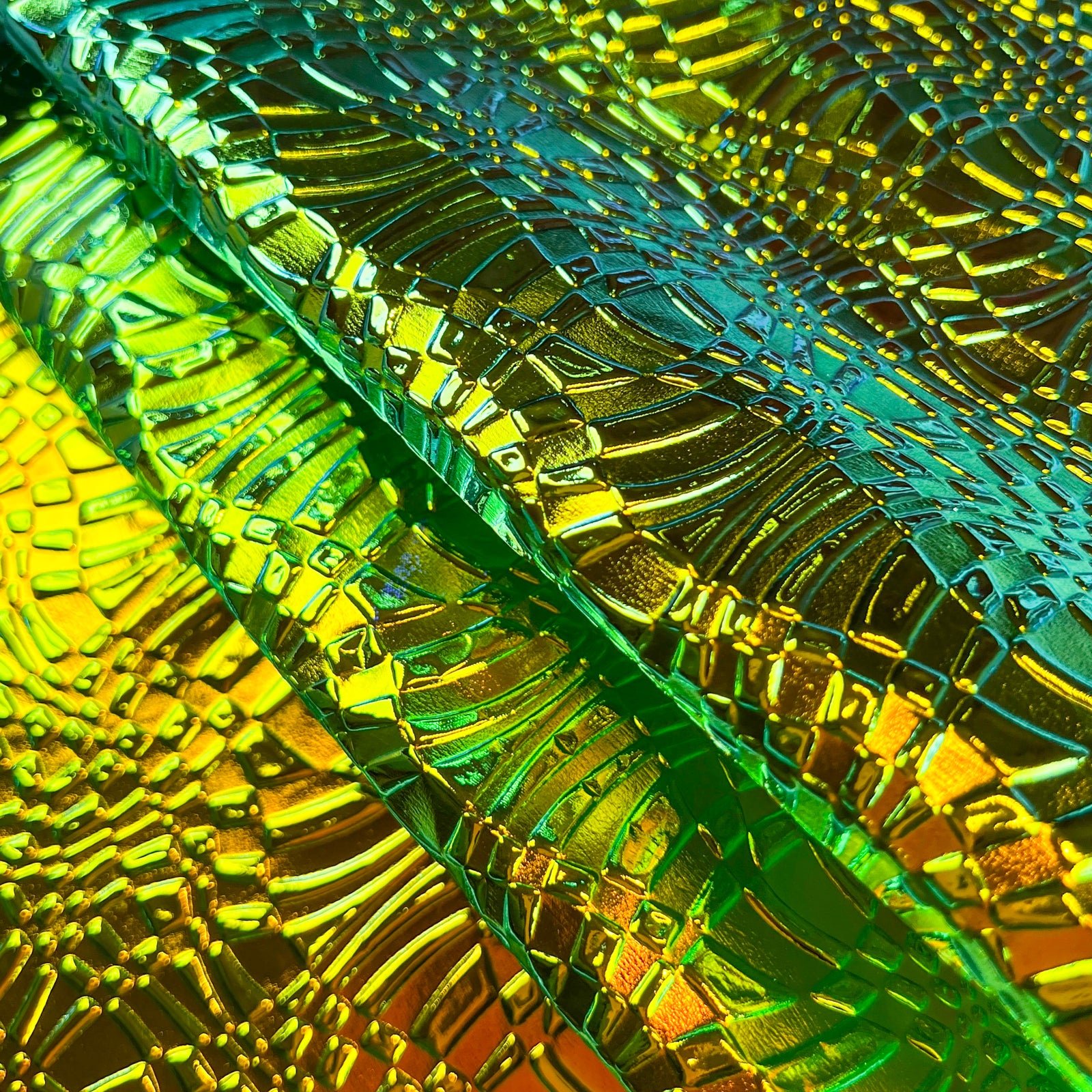 3D Holographic Shiny Lambskin Leather With Print 0.6mm/1.5oz / GREEN HOLO 1449