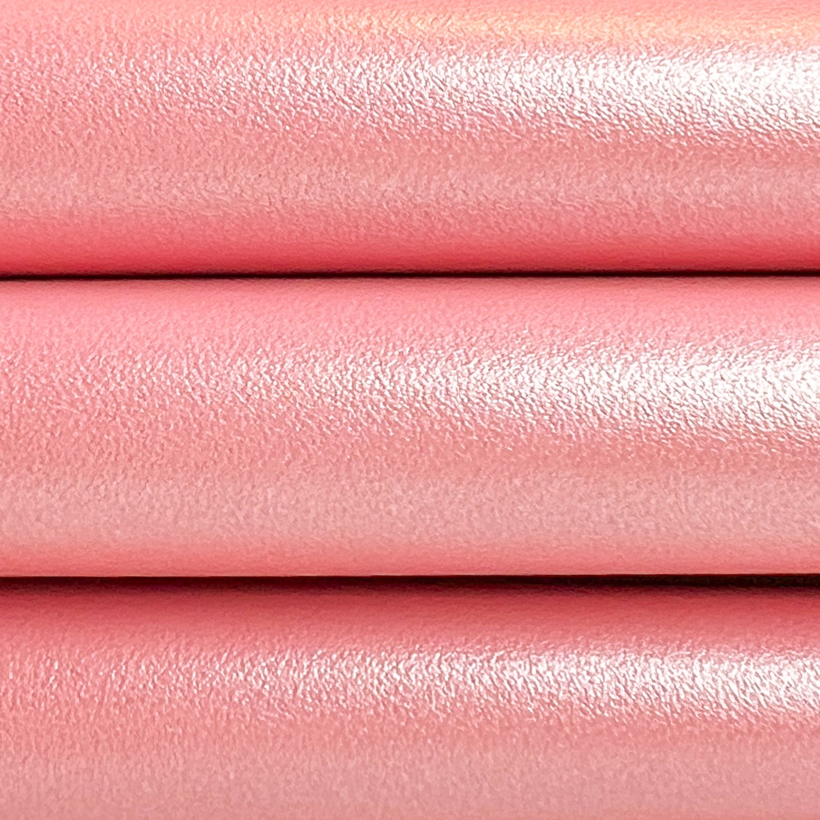 Baby pink lambskin leather with unique perlamuter shine! Amazing leather for bag and purse crafters will be long-lasting. Our mission is to provide only the highest quality Italian leather to other leather workers, crafters of all kinds, small businesses, or shops for your projects.