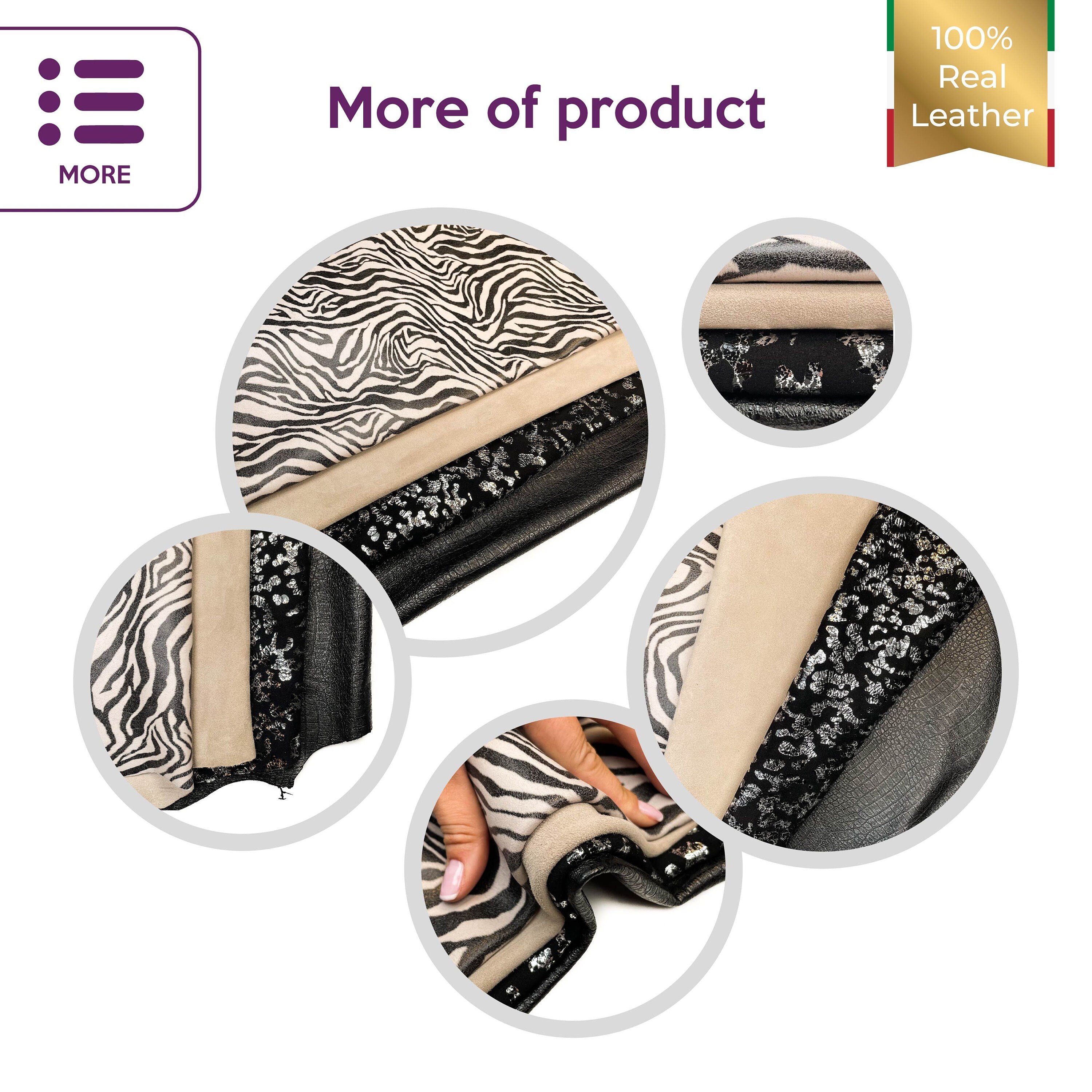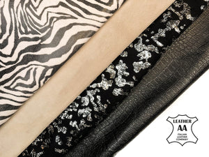 Beige & Black Animal Print Metallic Suede Embossed Leather Bundle Mix of 4 Skins