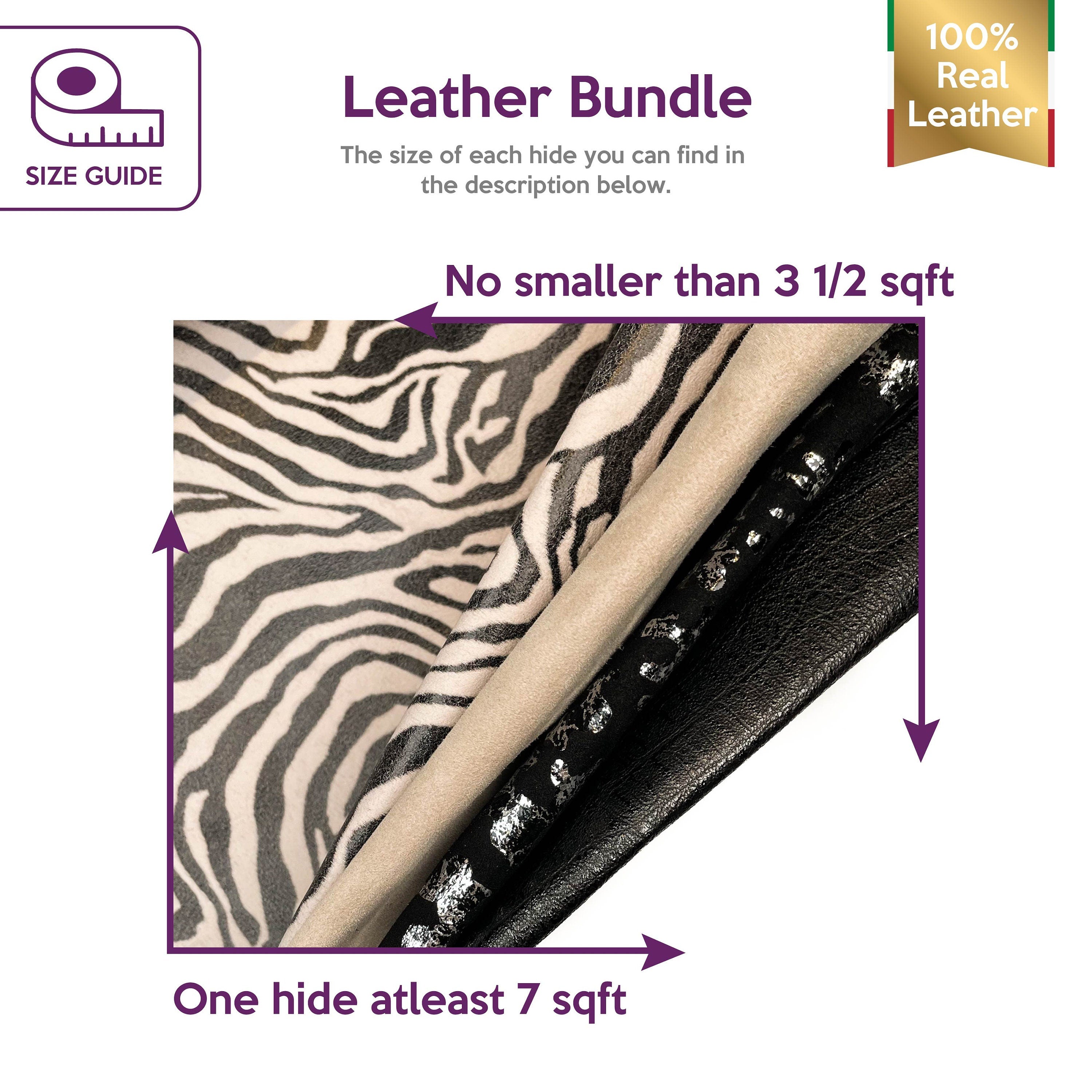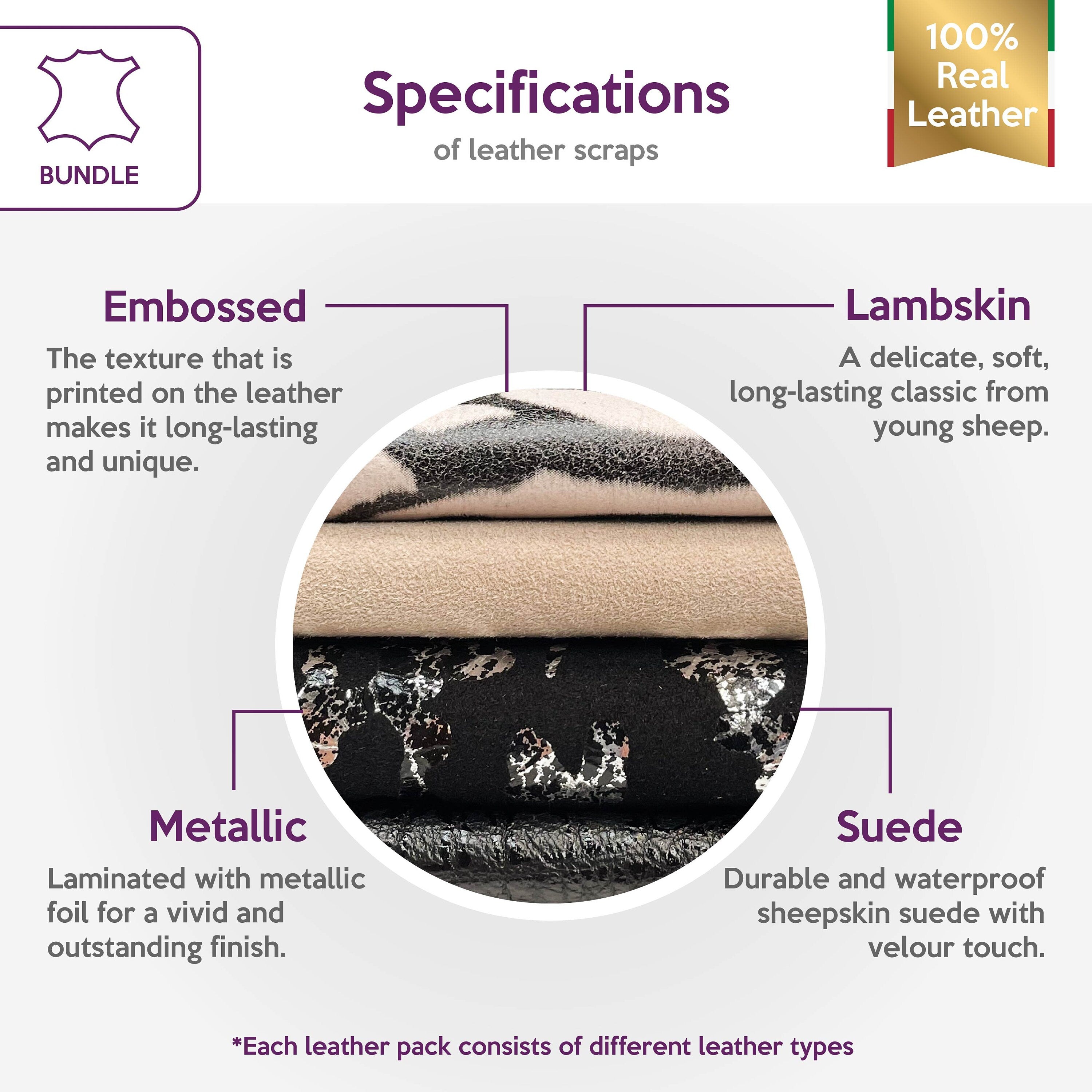 High-quality lambskin leather bundle of 4. Includes the softest sheepskin leather, the brightest metallic, and unique embossing.
