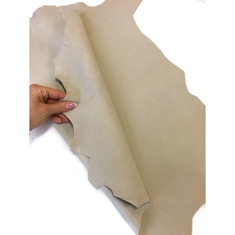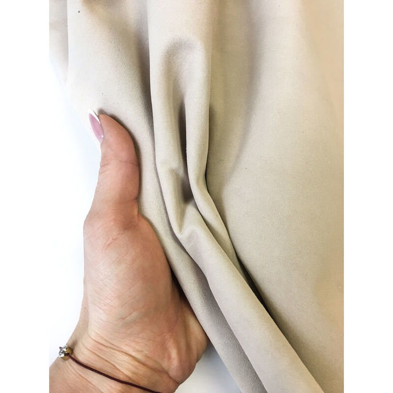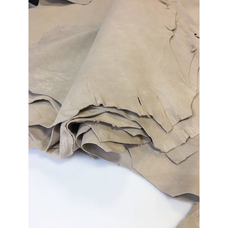 -Smooth suede sheep skin leather fabric, nice and soft leather top. BEIGE velour leather pieces with yellow hue. Soft leather skins. Sell in full hides. Firm and high quality leather pieces. Thin leather pieces.
