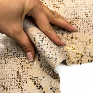 High-quality beige lambskin leather hides with snake print. Unique beige snake print leather for your best projects! Our mission is to provide only the best quality Italian leather to other leather workers, crafters of all kinds, small businesses or Etsy shop for your own projects.