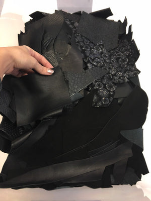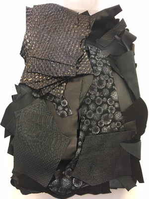 *Our Scrap packs are perfect for designers looking for leather for jewelry, black leather earrings, small leather goods and pieces on handbags, also black leather tassels. Feel free to contact for more information.
