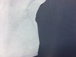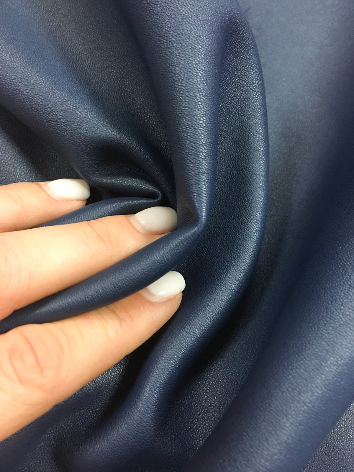 -Denim Blue elastic leather sheets, leather material good for sewing, thin enough to sew it with Your home sewing machine. Leteather pieces that have a cotton layer on one side, it makes it more elastic and make it to "come back" and not to stretch so fast, for ecample in the knees or elbows. Blue sheep skin material would look perfect as denim leather leggings or deep blue pencil skirt. It is meant to be as something body shape immitating You totally will be super satissfied with this leather. We guarantee.