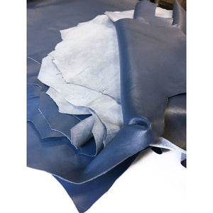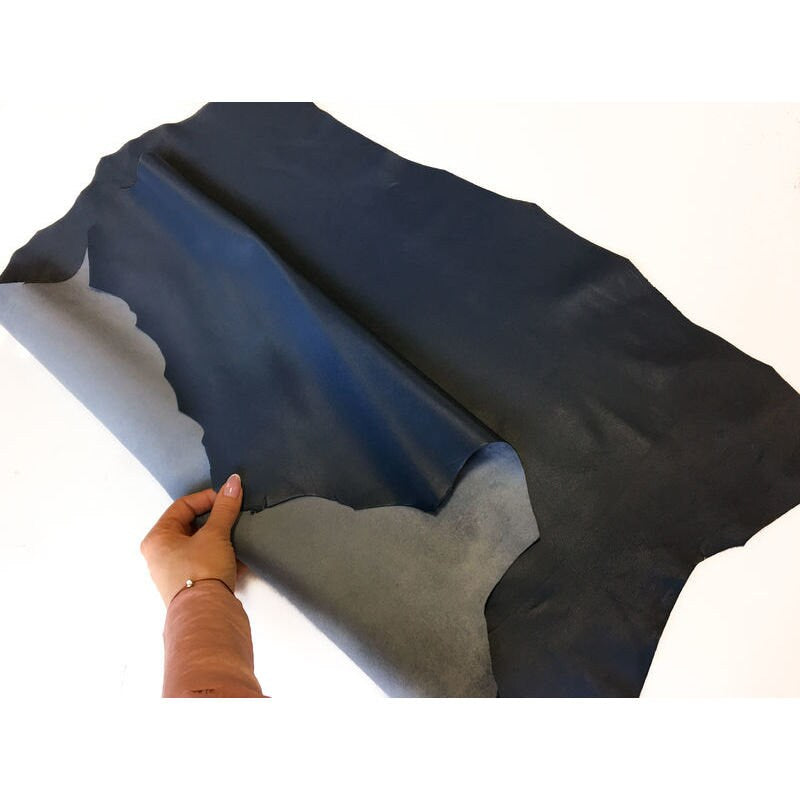 Soft blue lambskin. Genuine animal hides for sewing and handcrafting. Amazing leather for bag and purse crafters will be long-lasting. Our mission is to provide only the highest quality Italian leather to other leather workers, crafters of all kinds, small businesses, or shops for your own projects.
