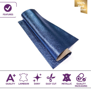 -BLUE VIOLET metallic leather fabric, beautiful foil coat on beige lambskin leather sheets for crafting. Quite thick but soft leather scraps for jewellery. Firm and high quality leather earring pieces. Perfetc for DIY projects!