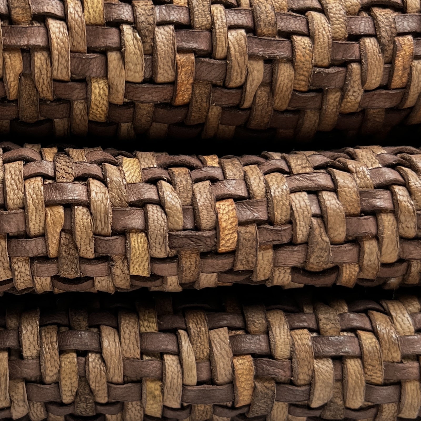 Braided Brown Lambskin Leather With Zig Zag Print Strand Leather  ~ 1mm/2.5oz