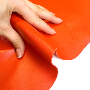ORANGE leather fabric genuine lambskin leather real lambskin leather hide bright red leather piece leather material ORANGE SATIN 570, 0.9 mm